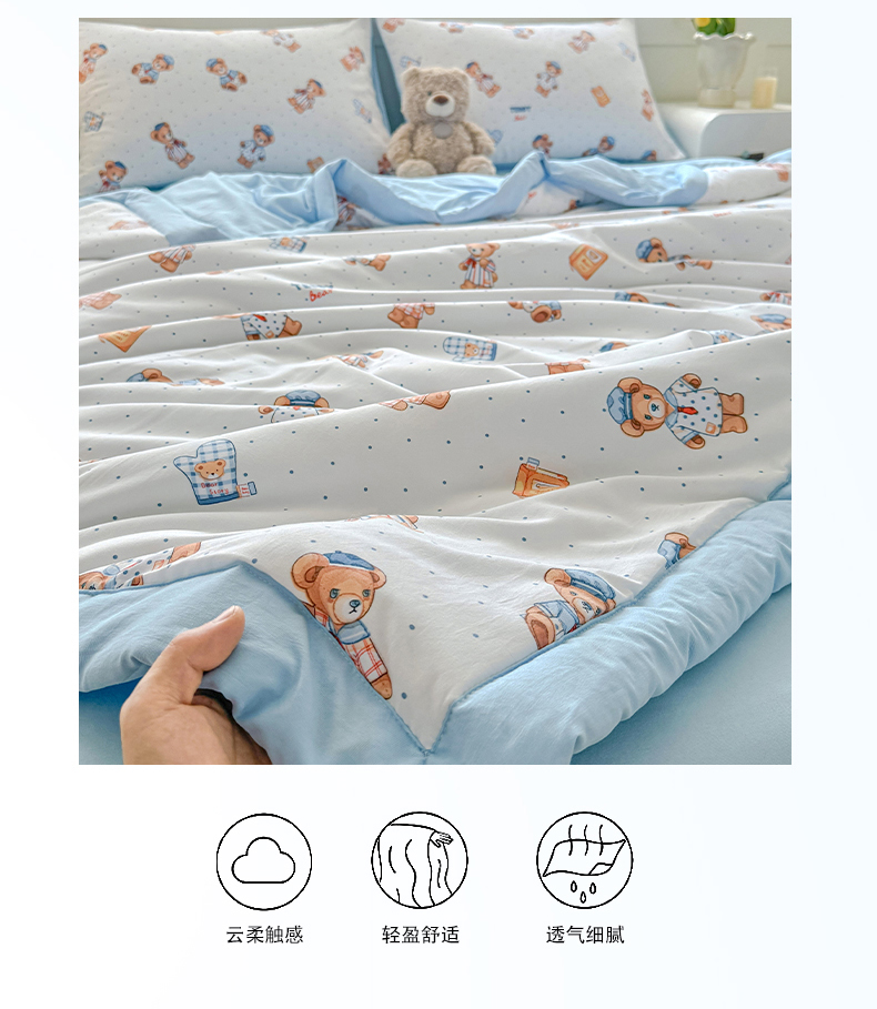 当前位置: 91家纺网 > 商品网购 > 床品套件 > 四件套 > 夏被四件套 > 优卡迪家纺馆 【下载文件夹包含买家秀】2025春夏新款针织棉双层纱夏被夏凉被空调被四件套 童真