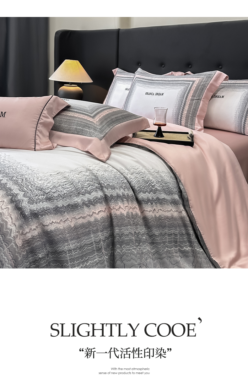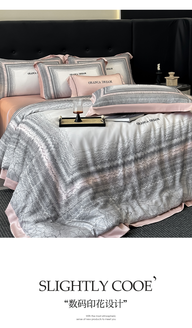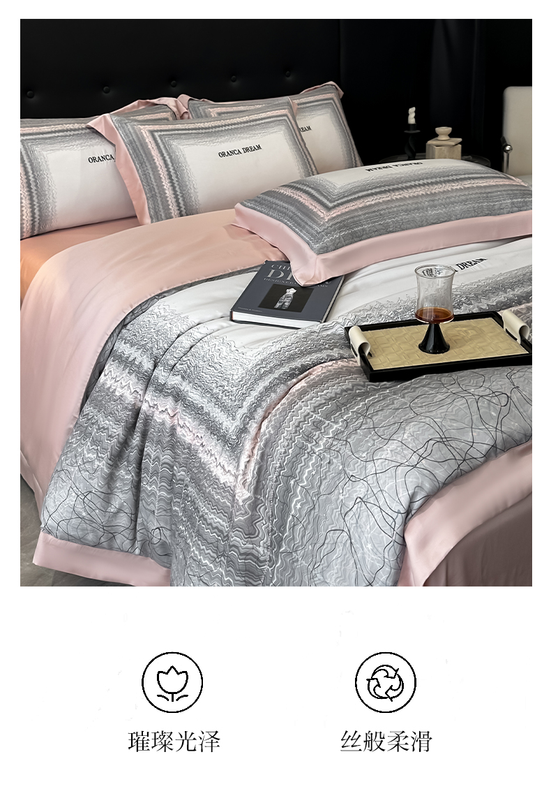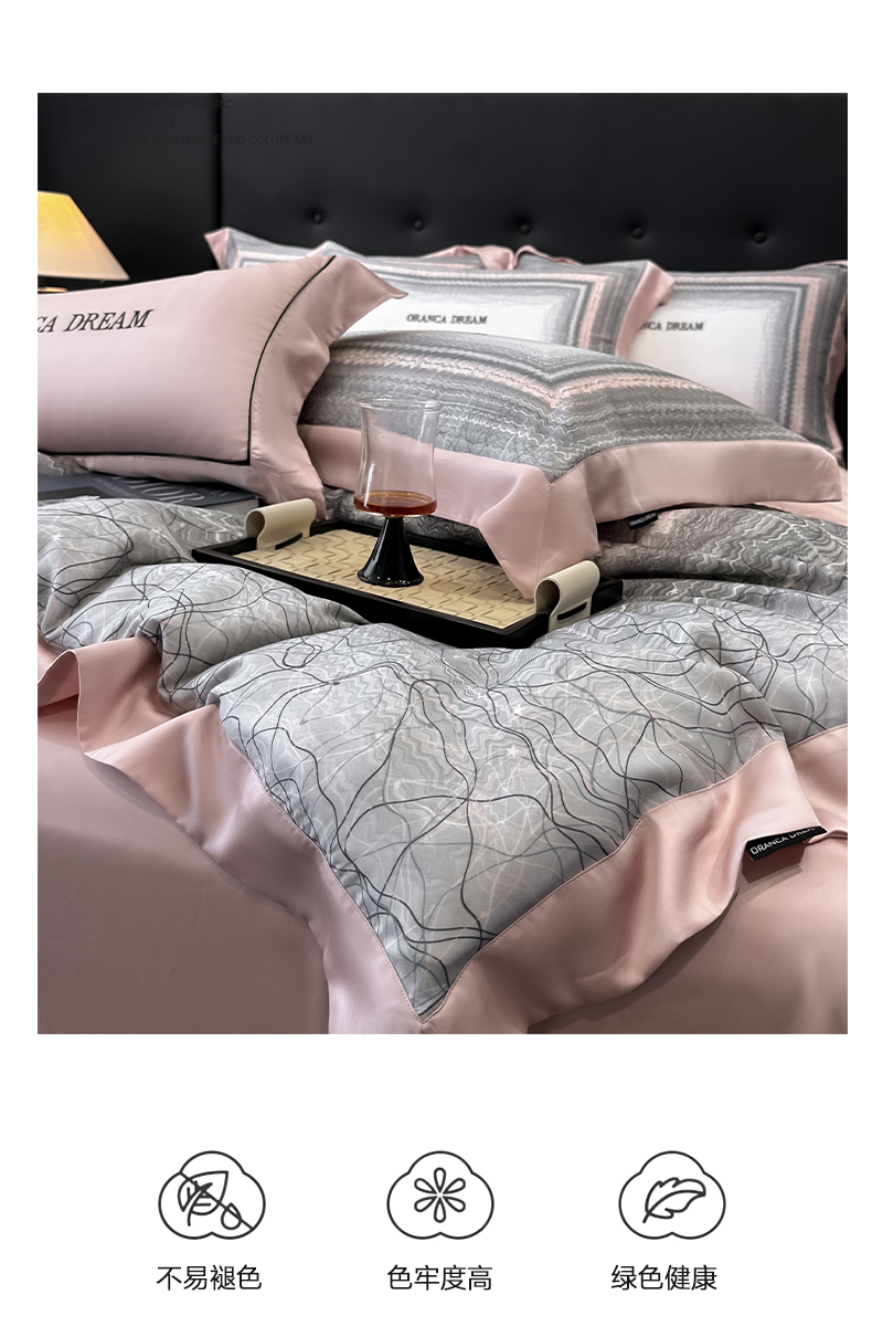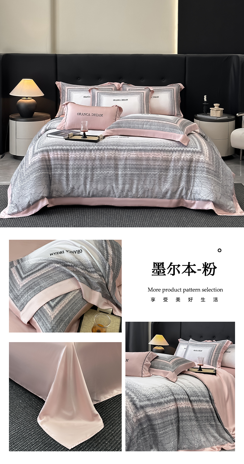 2025夏季新品莱赛尔天丝数码印花刺绣绣花天丝四件套 墨尔本-粉