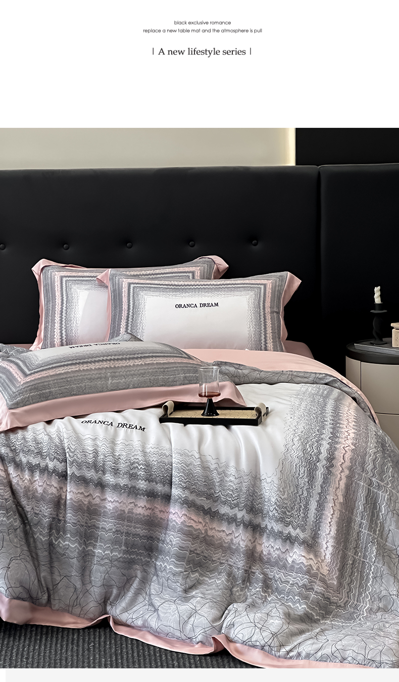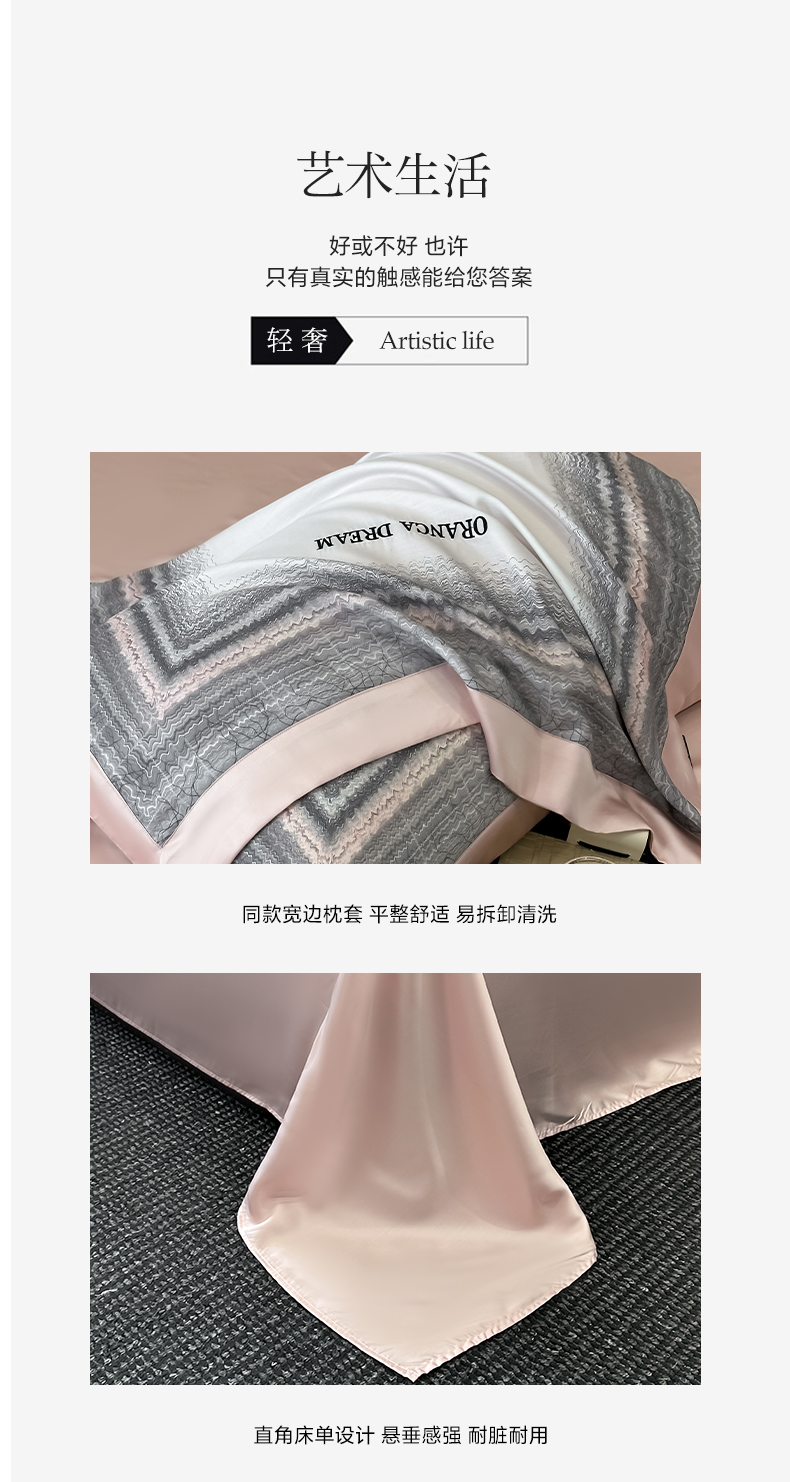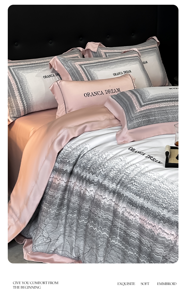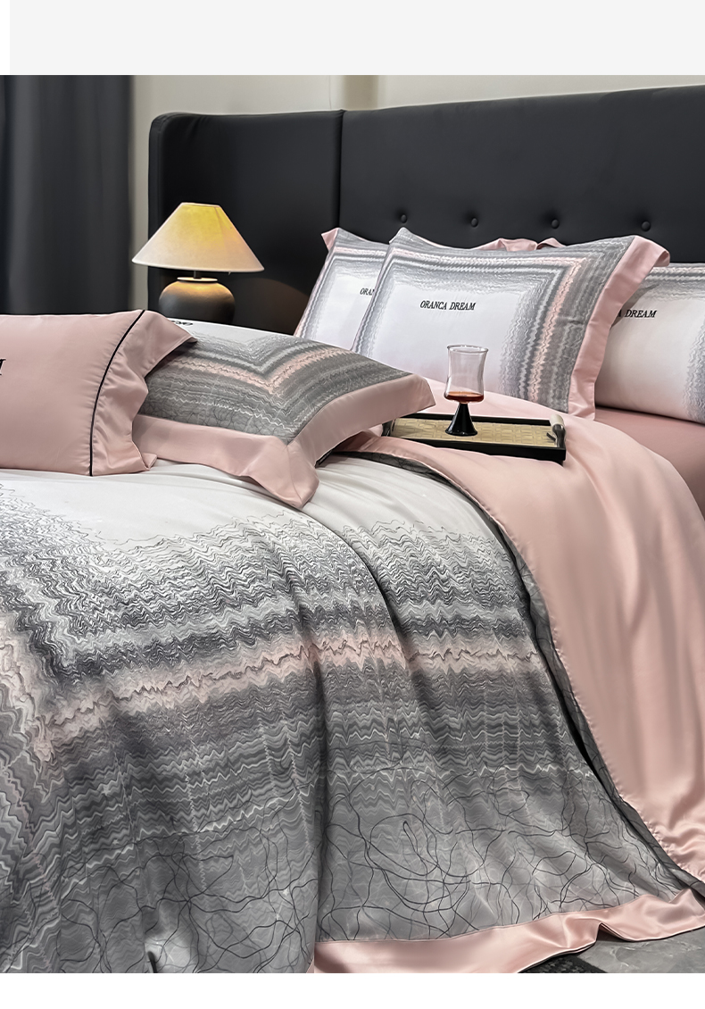 2025夏季新品莱赛尔天丝数码印花刺绣绣花天丝四件套 墨尔本-粉