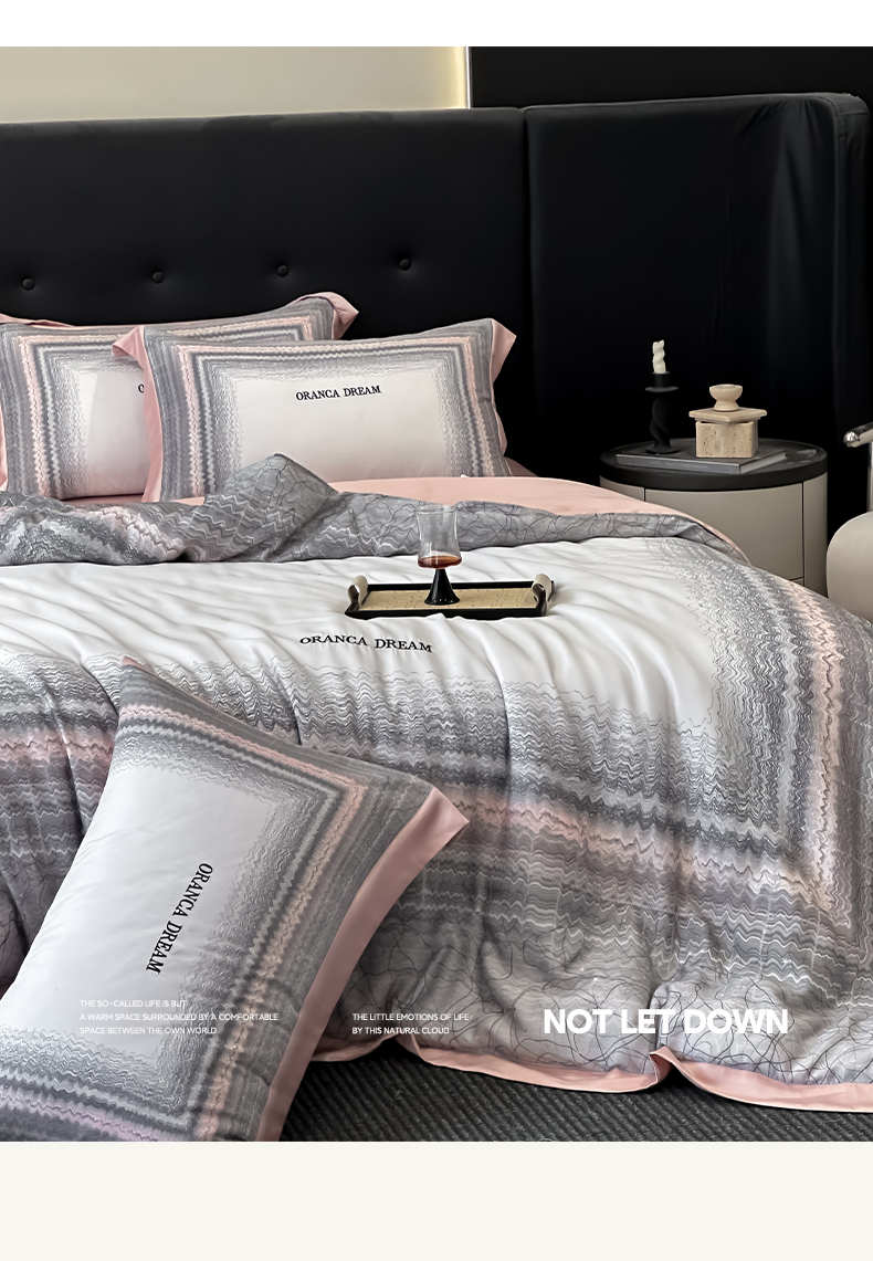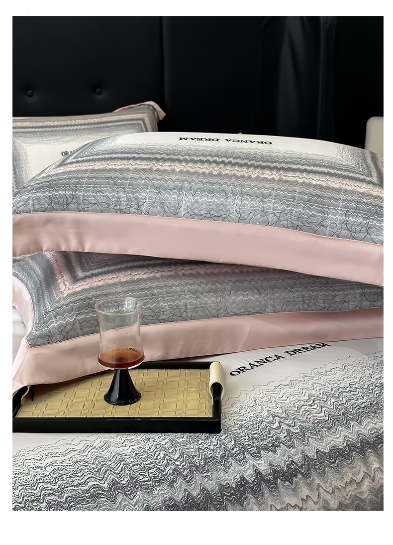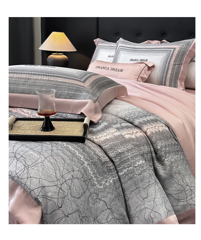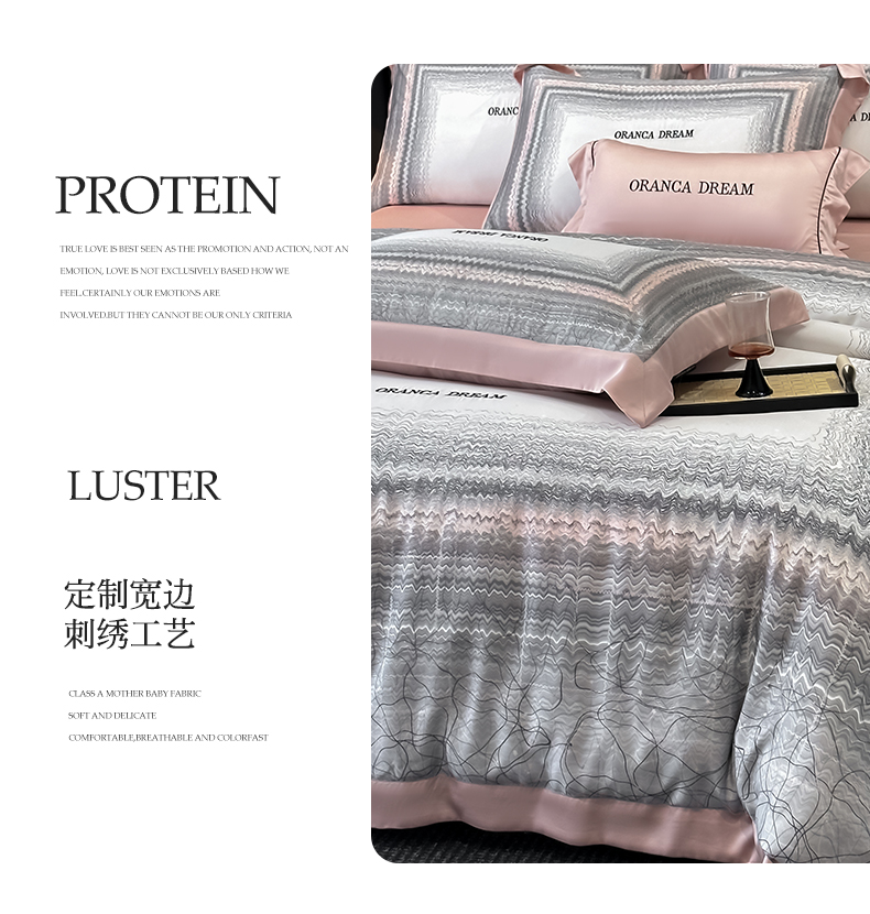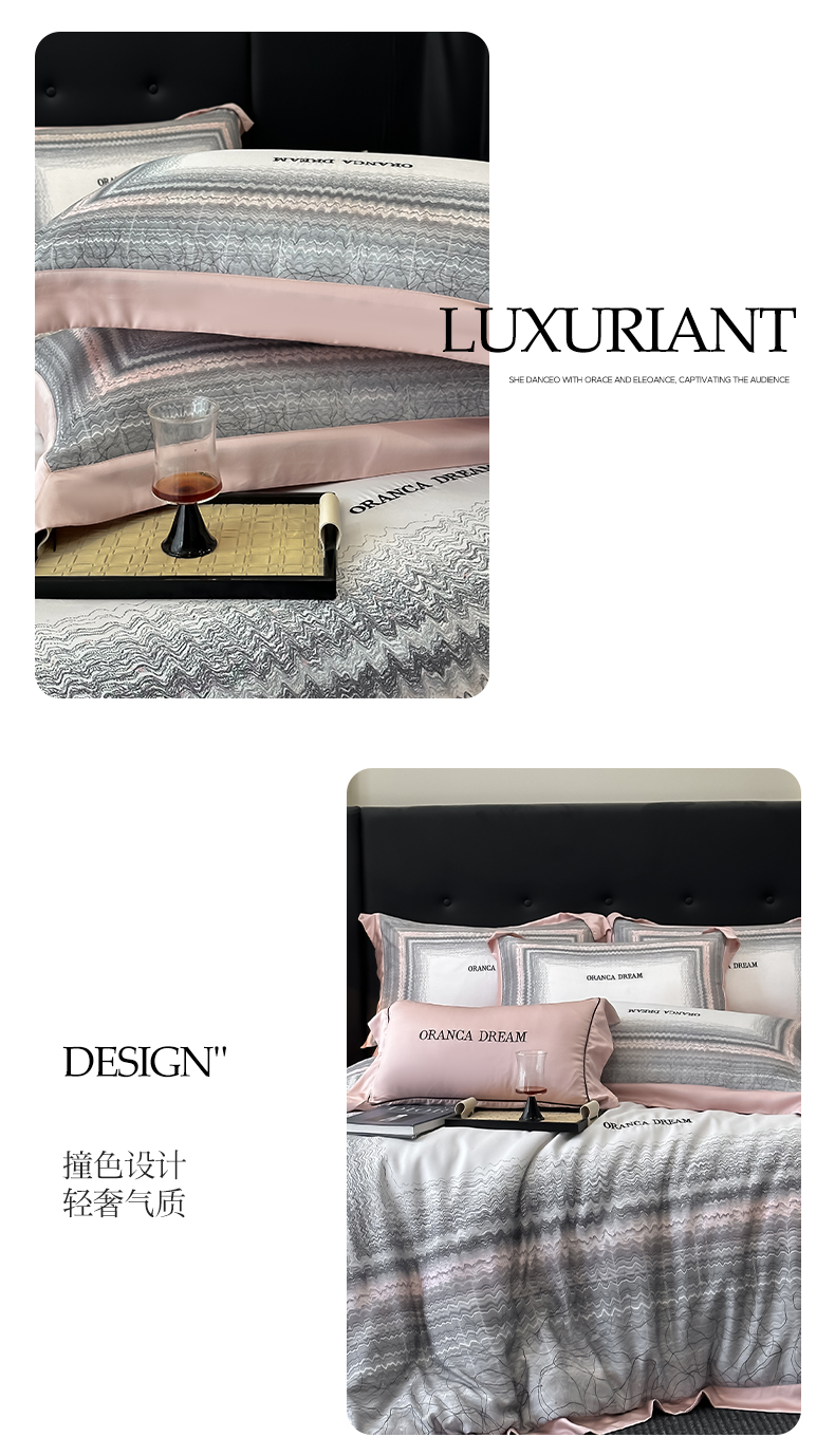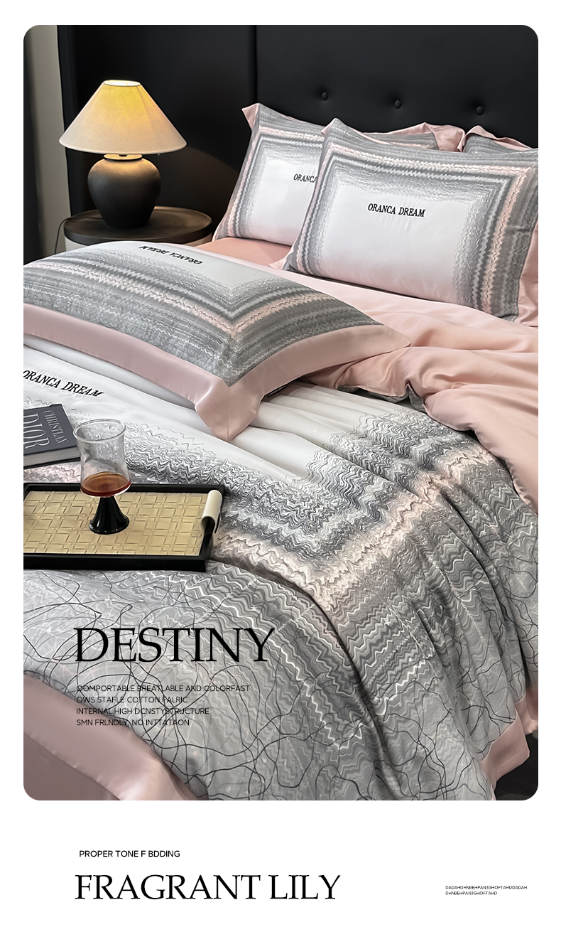 2025夏季新品莱赛尔天丝数码印花刺绣绣花天丝四件套 墨尔本-粉