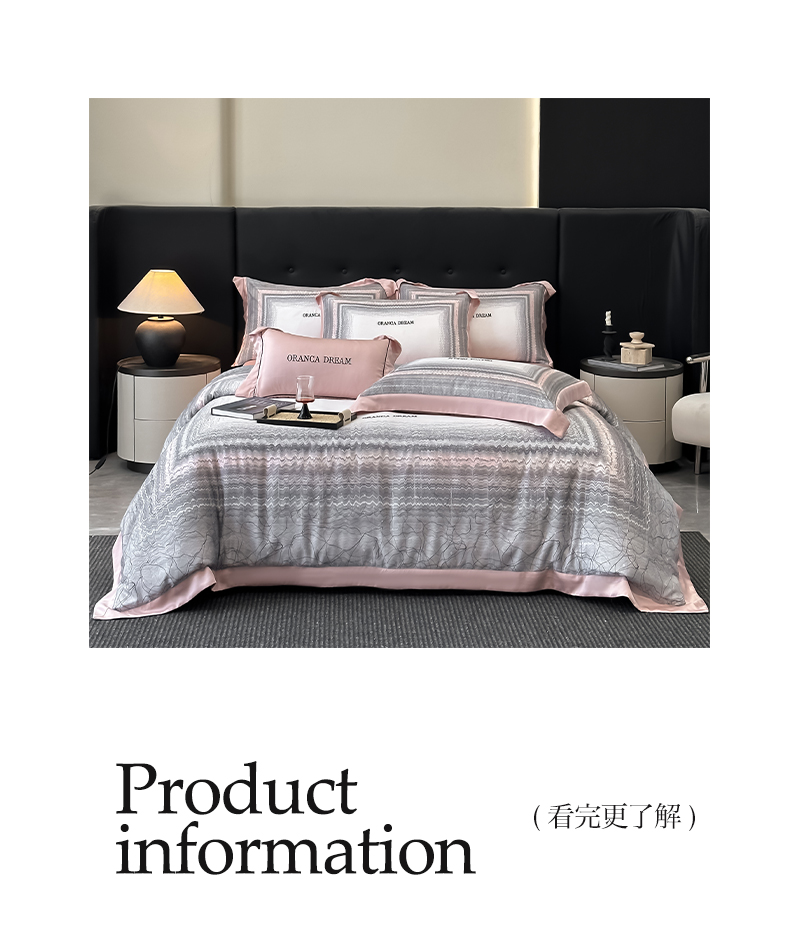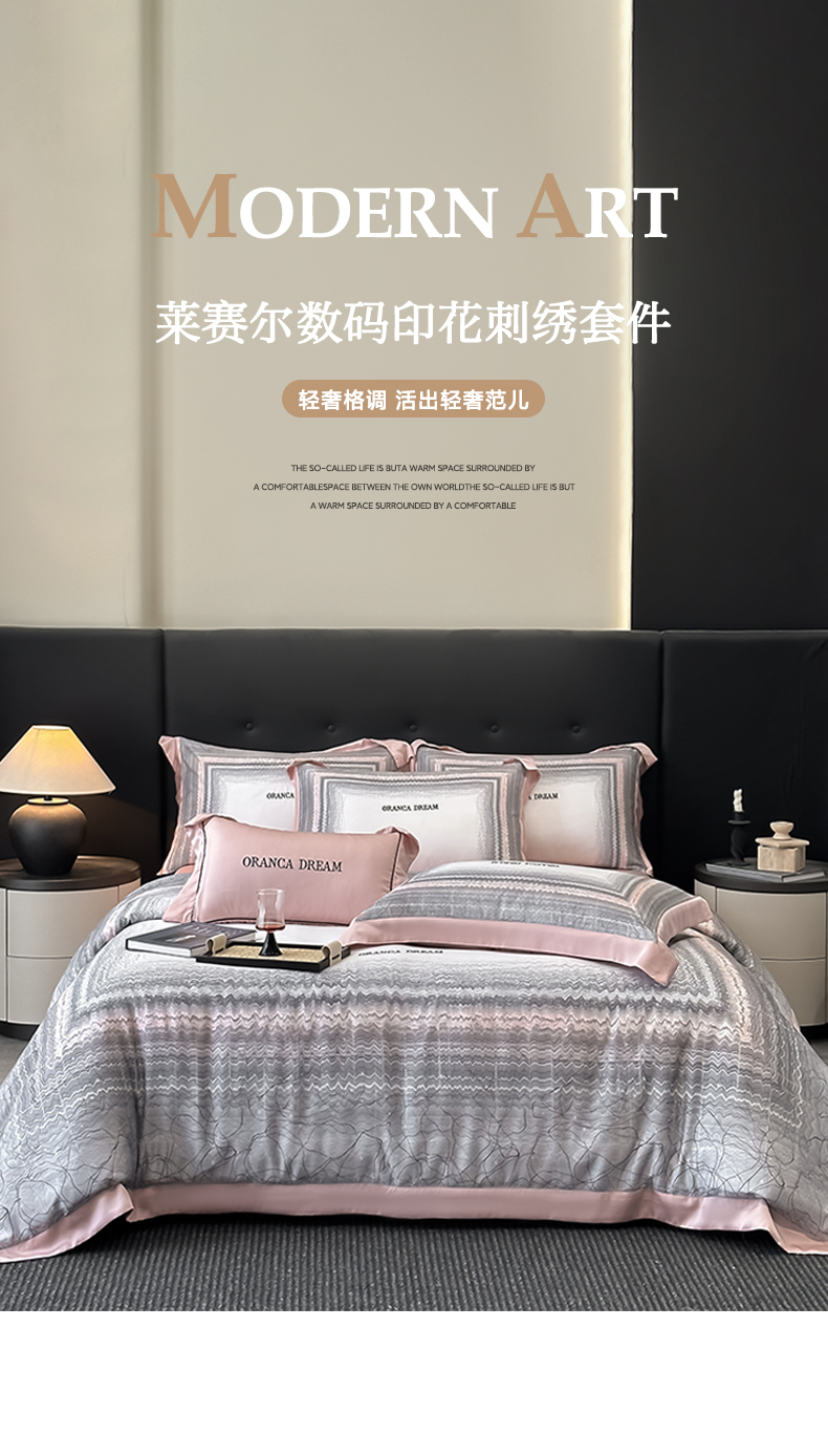 商品名称:2025夏季新品莱赛尔天丝数码印花刺绣绣花天丝四件套 墨尔本-粉