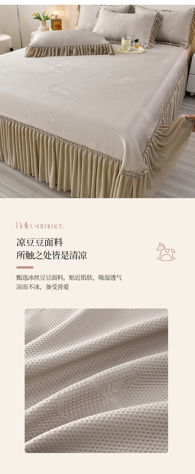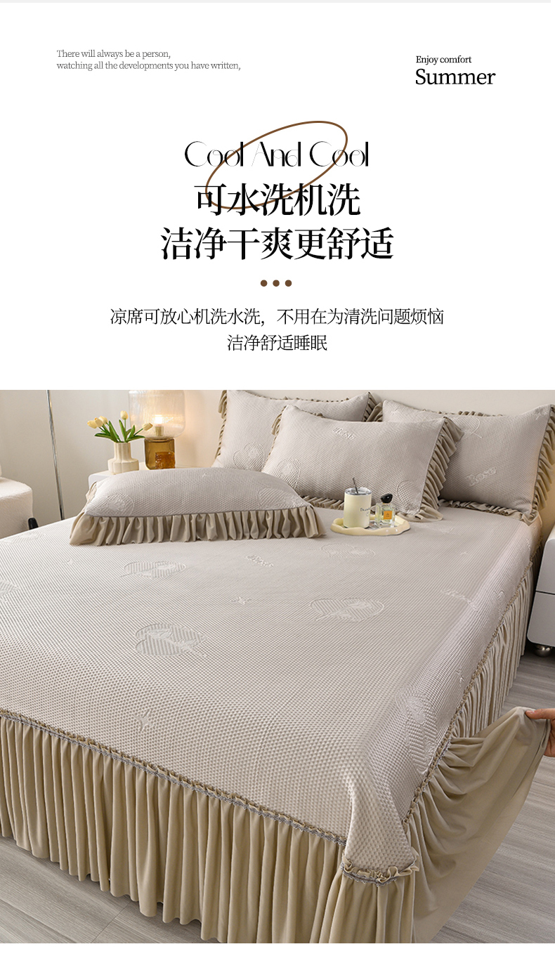 商品名称:畅畅家纺 2025新款立体提花凉豆豆席床裙款凉席 爱之恋-咖