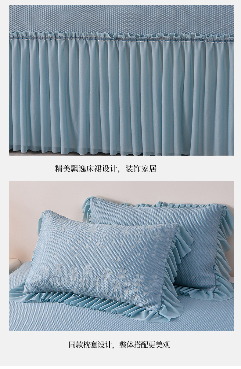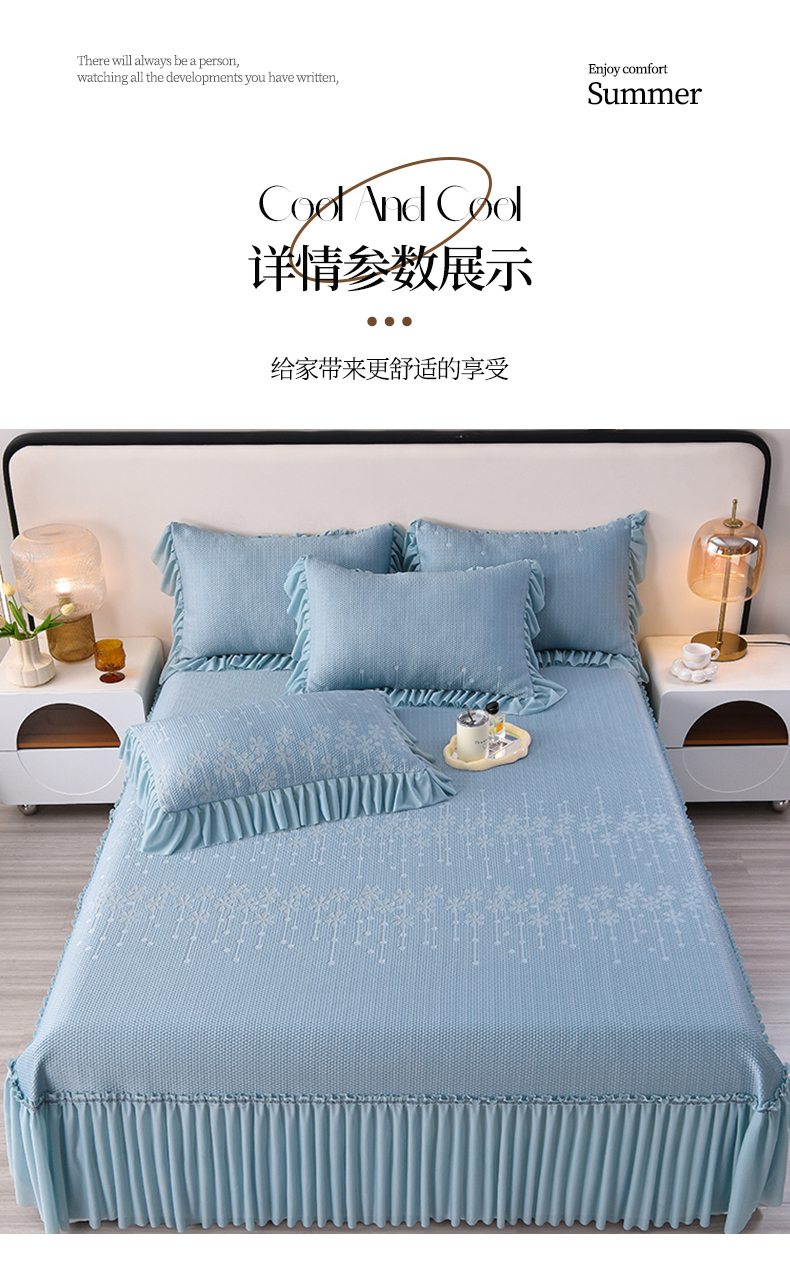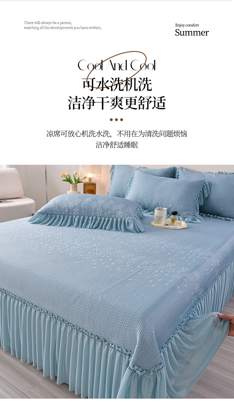 商品名称:畅畅家纺 2025新款立体提花凉豆豆席床裙款凉席 幸运草-蓝