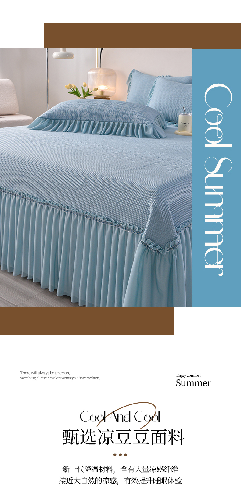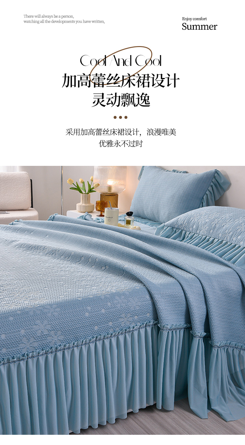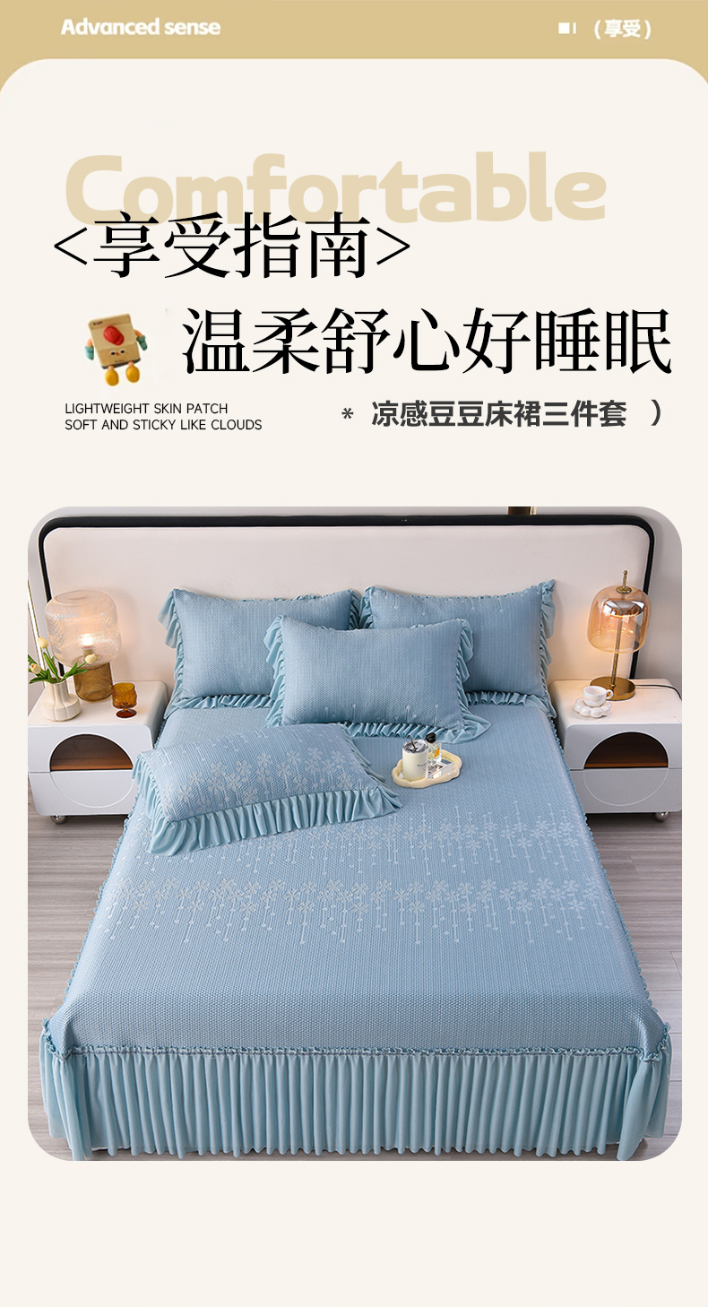 商品名称:畅畅家纺 2025新款立体提花凉豆豆席床裙款凉席 幸运草-蓝