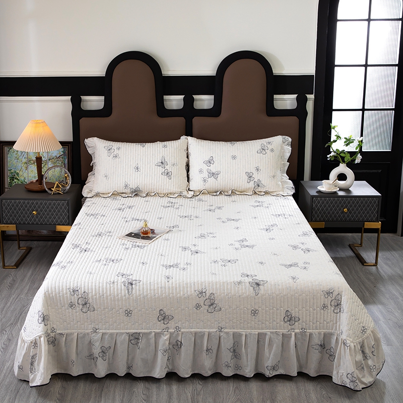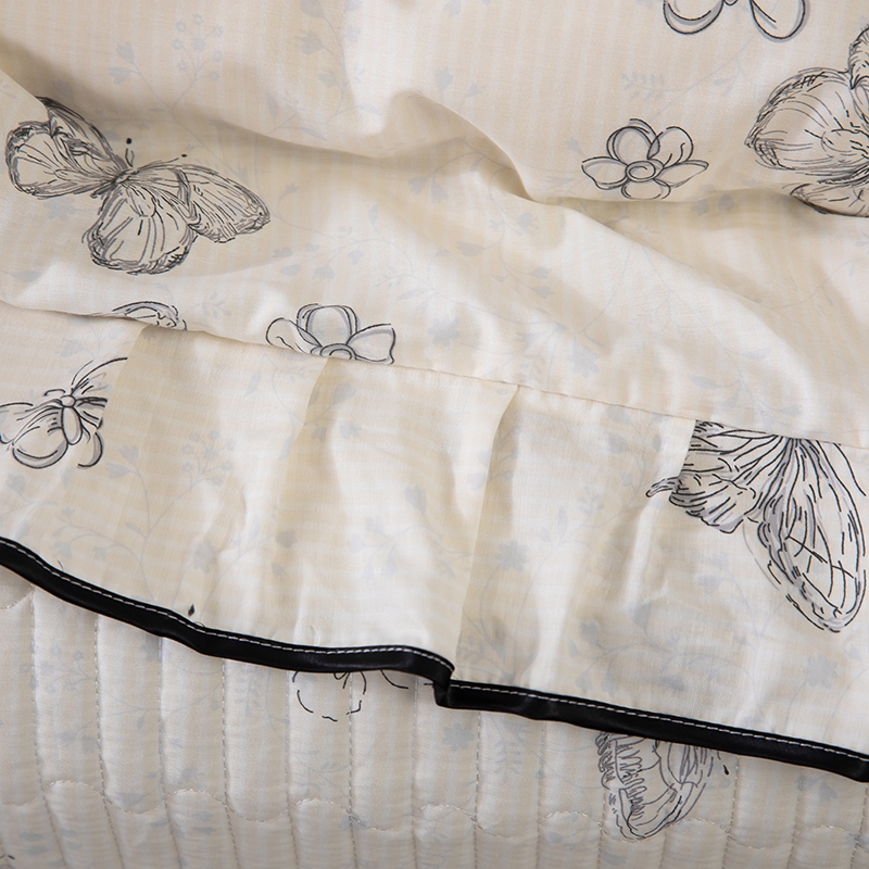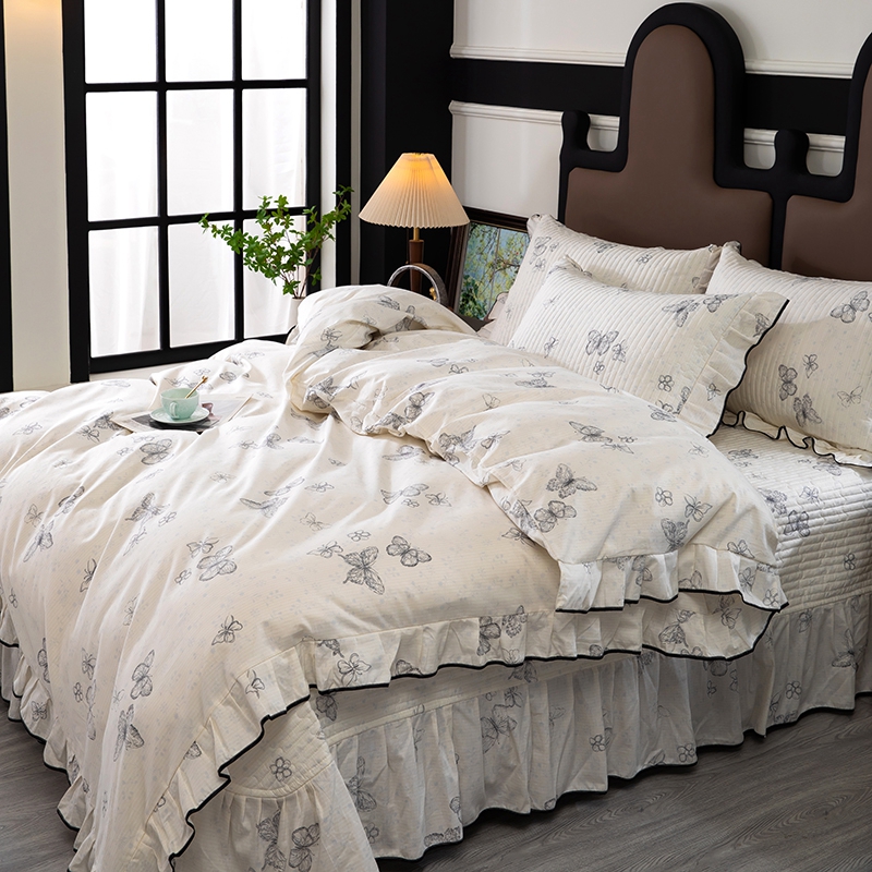 商品名称:木兰花2025新款全棉印花法式韩版花边夹棉床盖床裙款四件套 苏菲