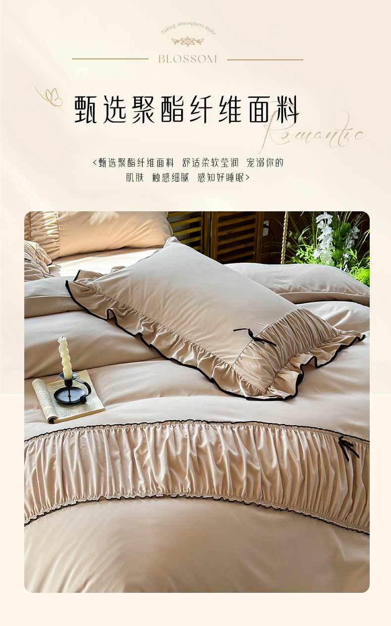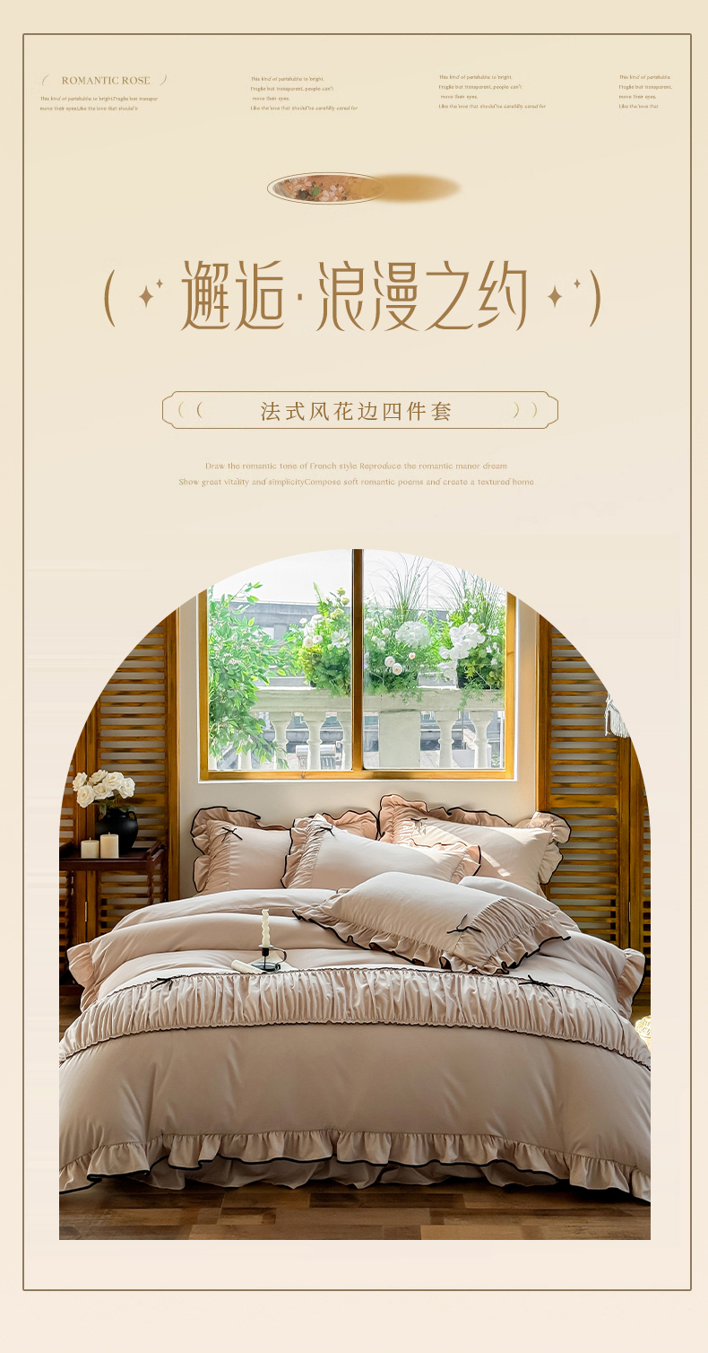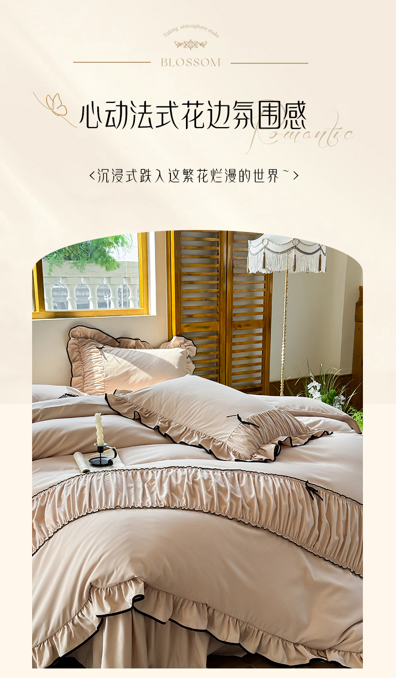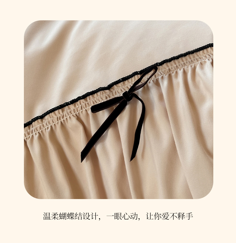 商品名称:2025秋冬新款A类母婴级法式风忆棉床裙床笠四件套 琉眠-棕雅咖