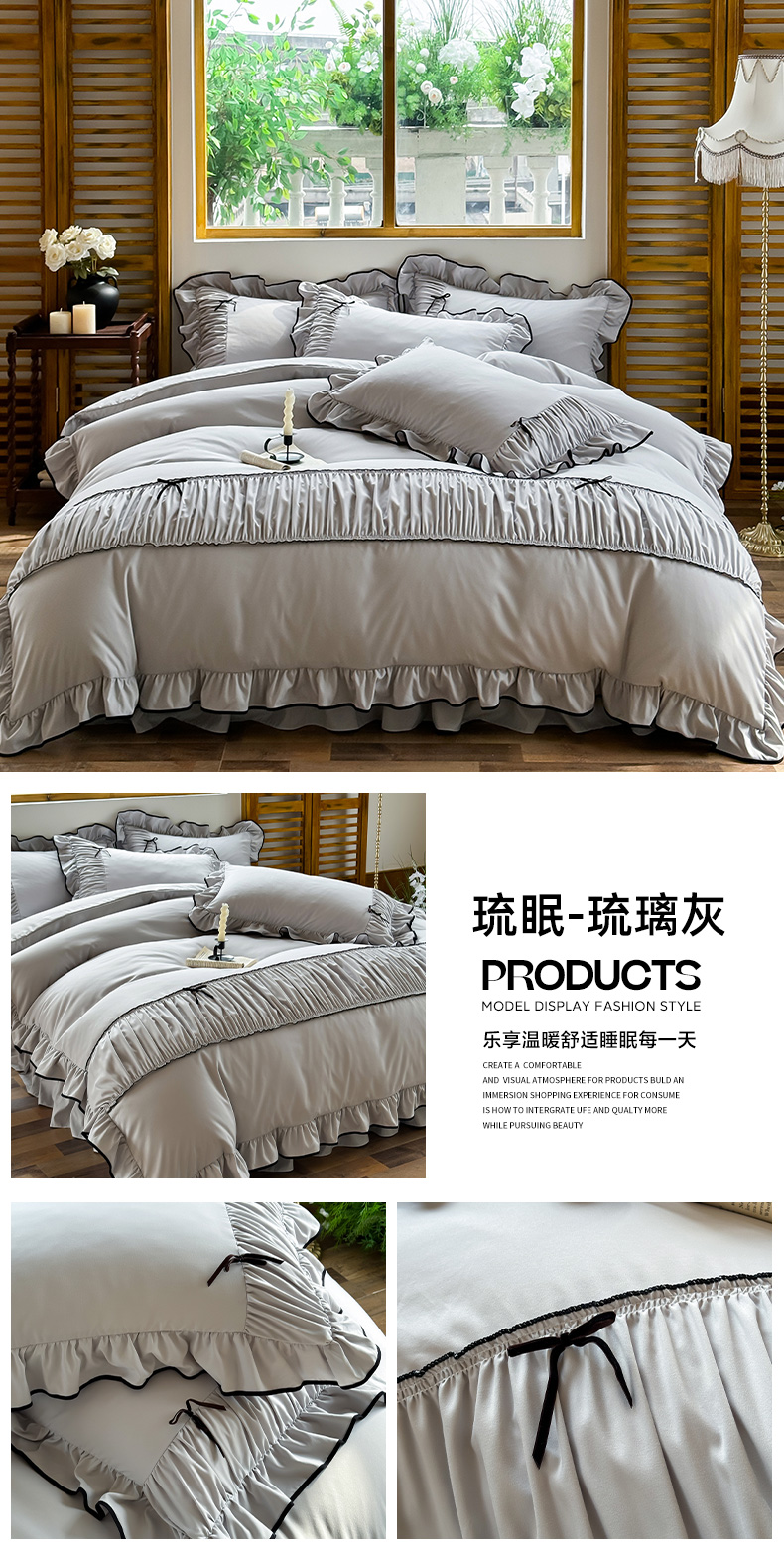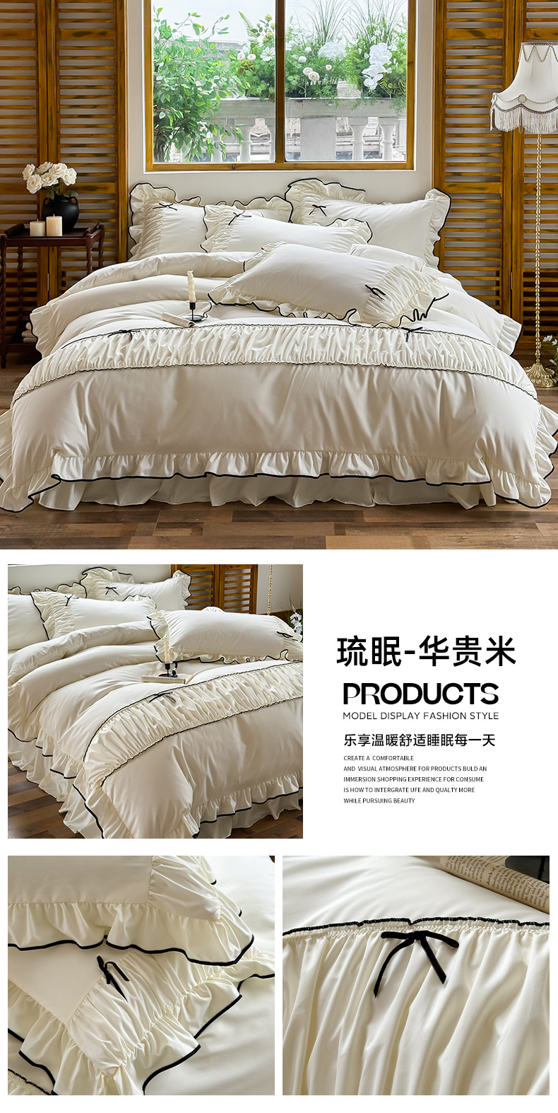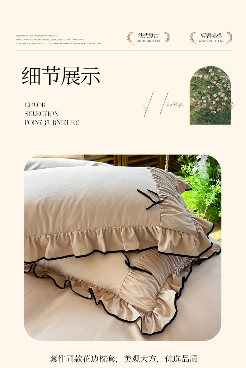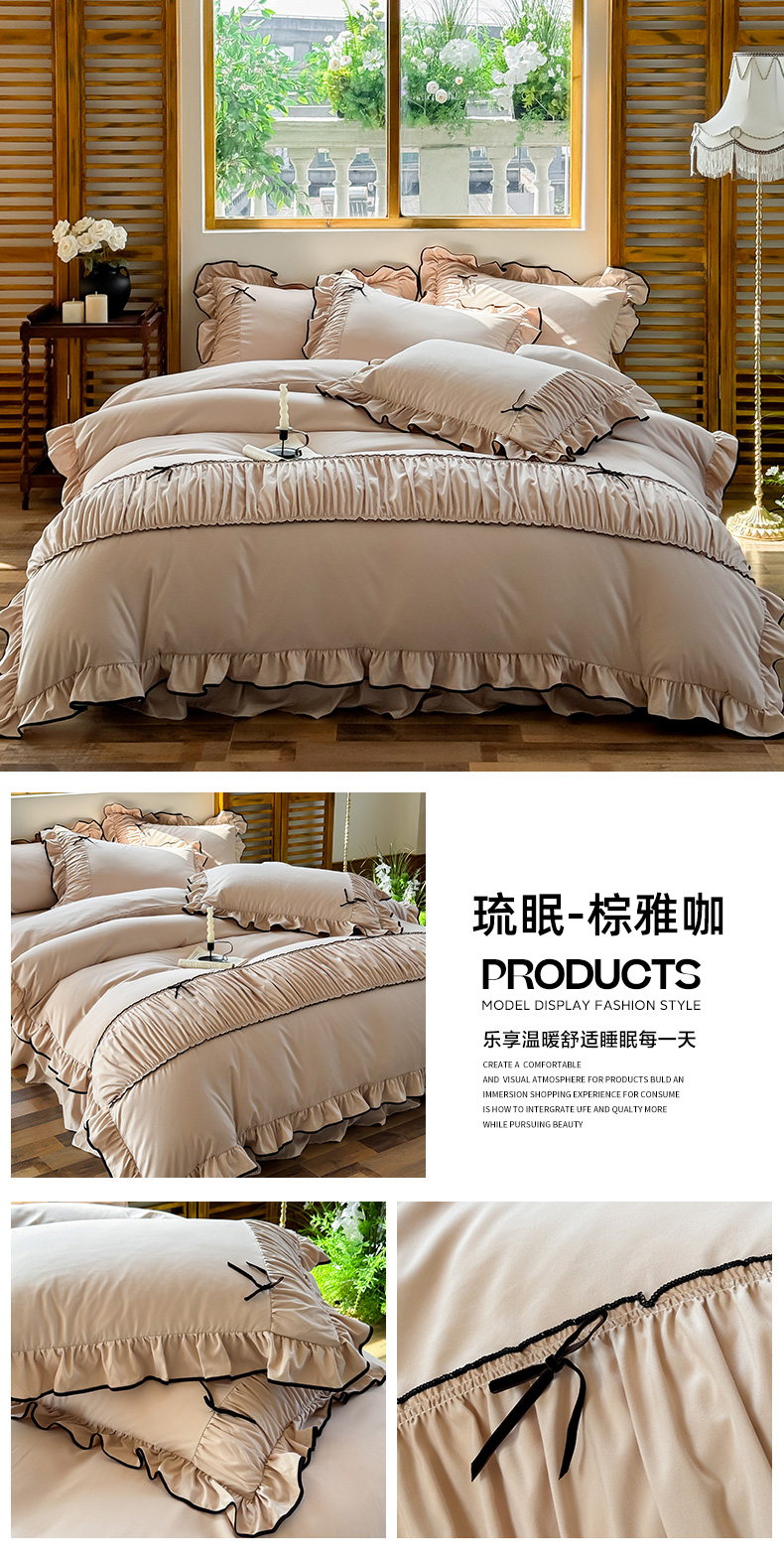 商品名称:2025秋冬新款A类母婴级法式风忆棉床裙床笠四件套 琉眠-棕雅咖