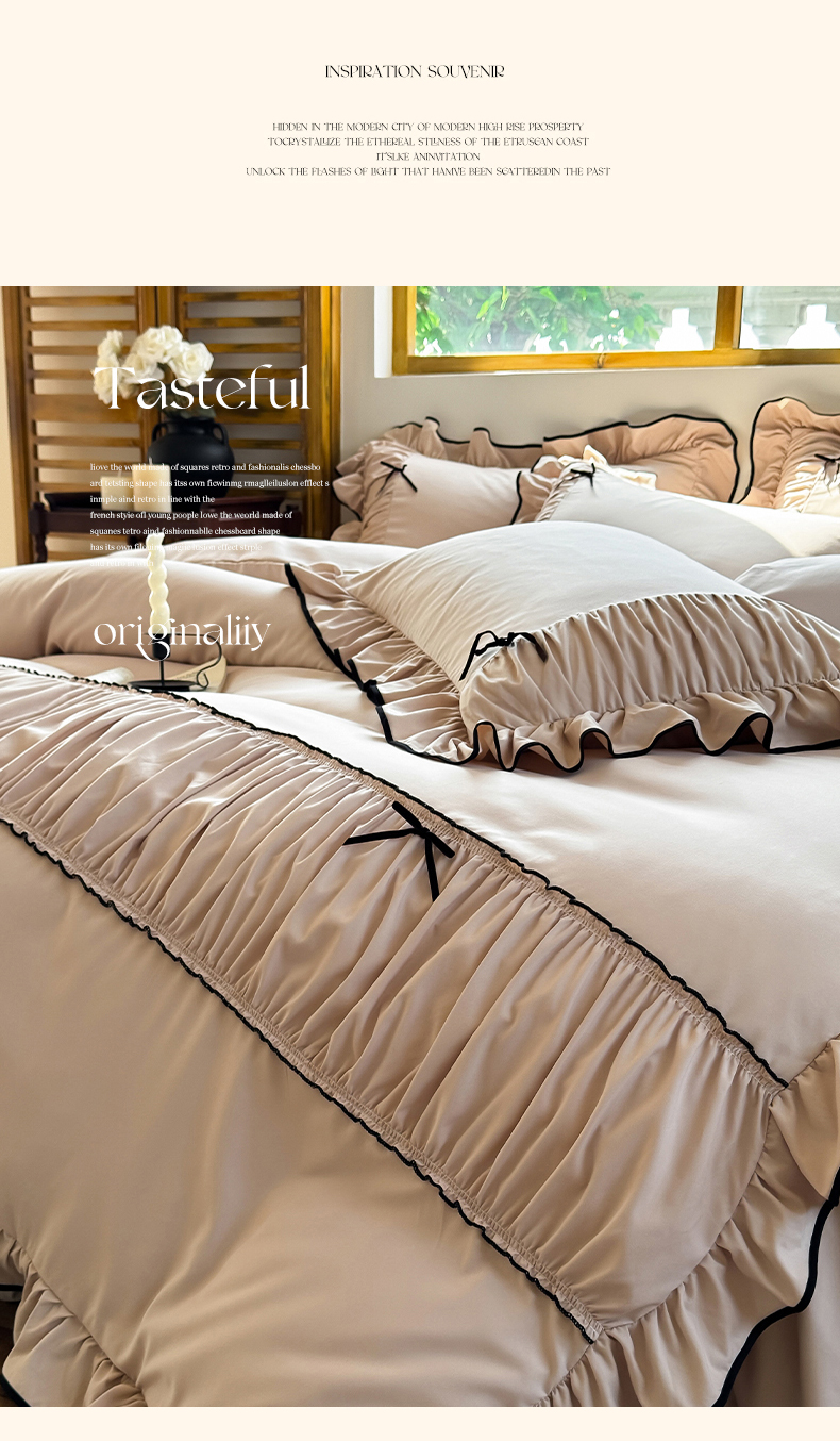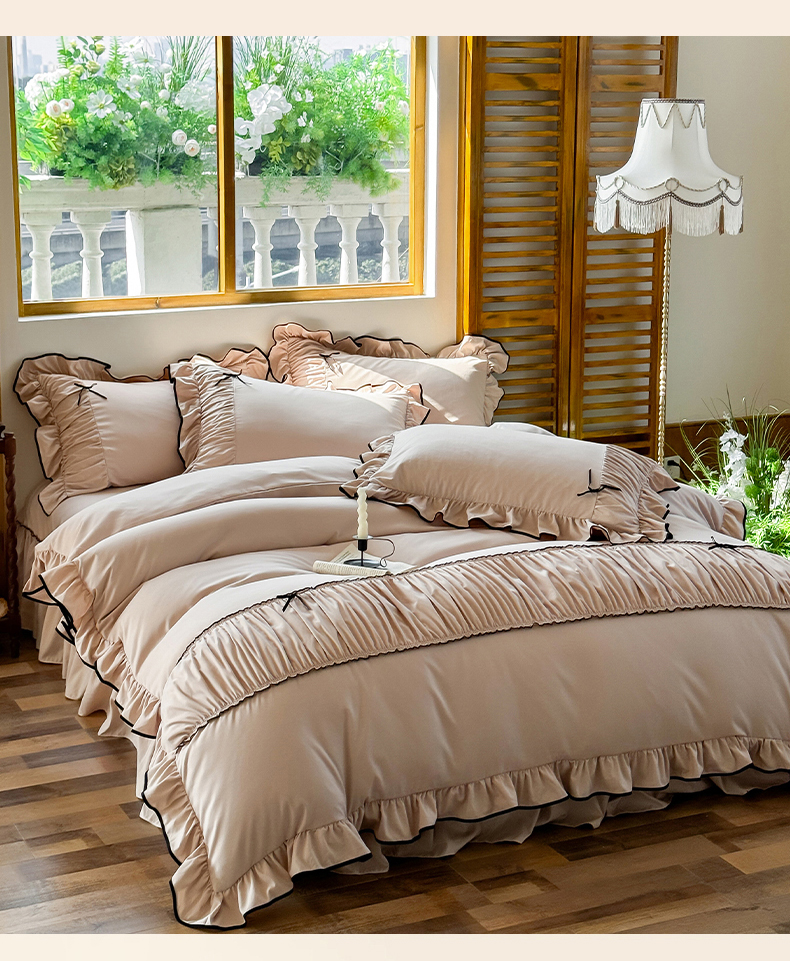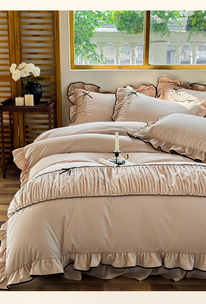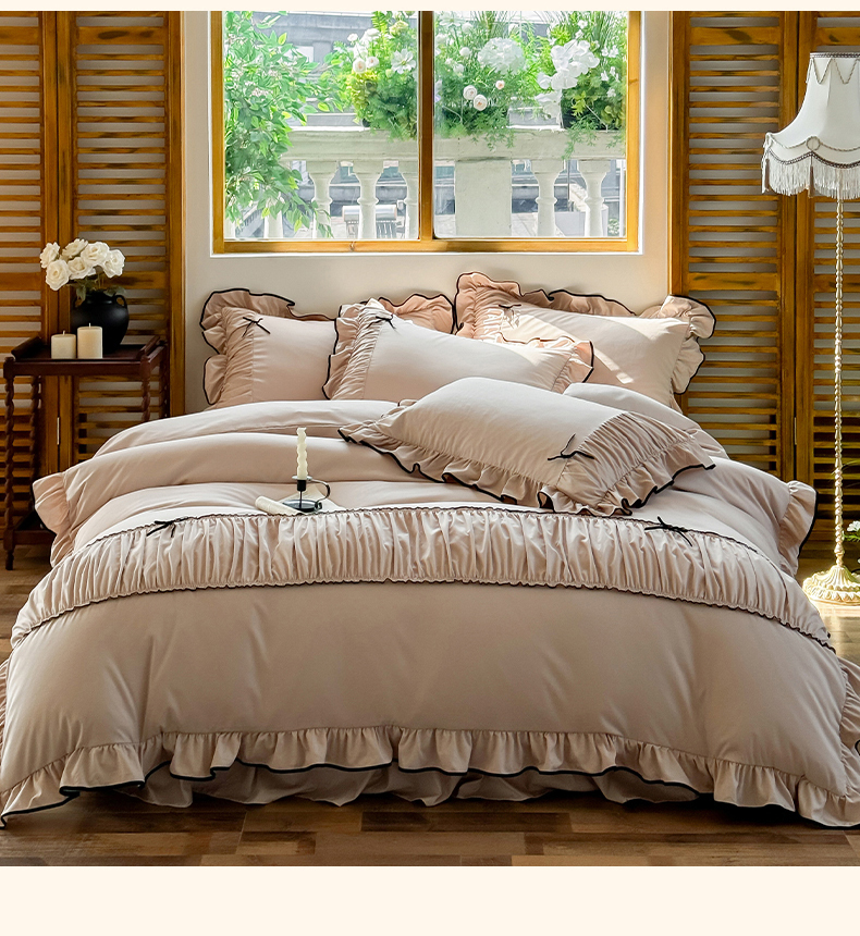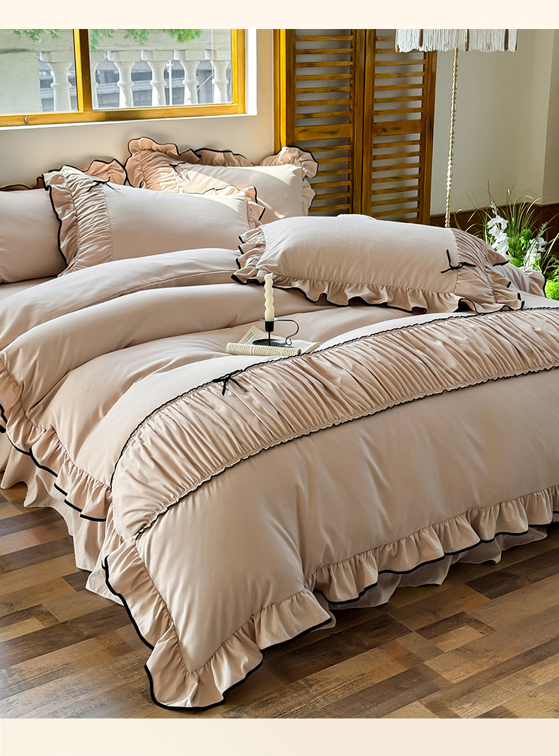 2025秋冬新款A类母婴级法式风忆棉床裙床笠四件套 琉眠-棕雅咖