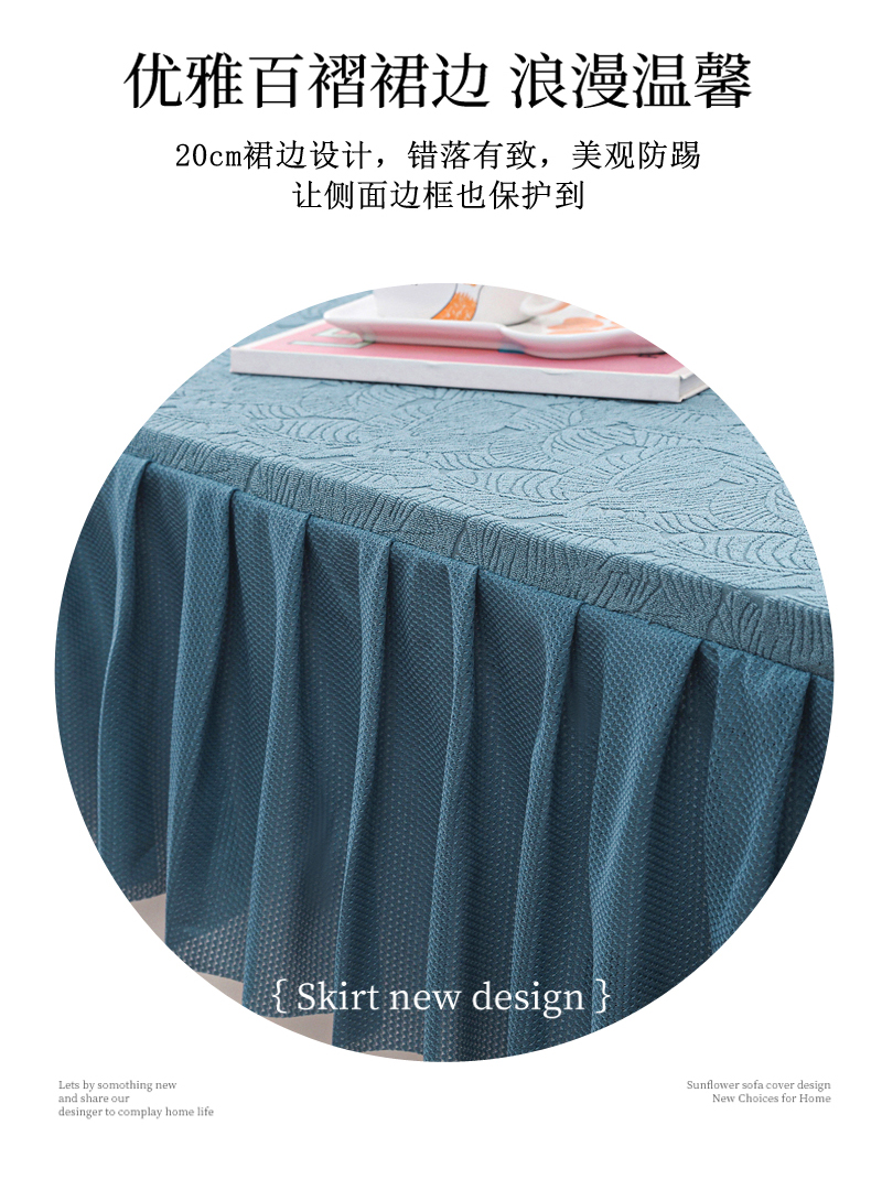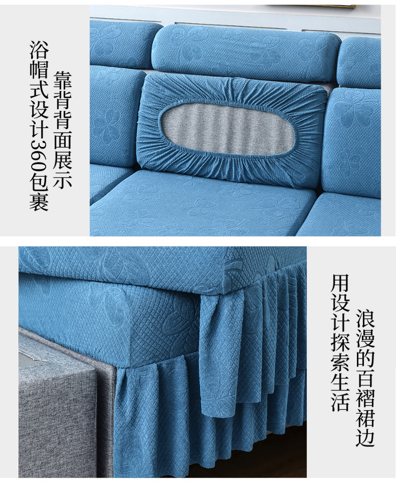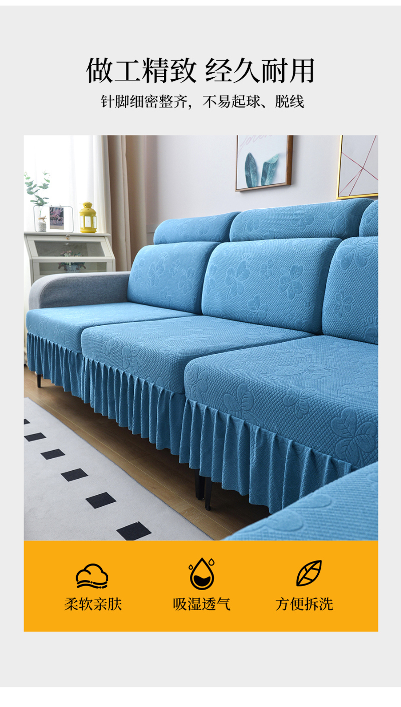 (总)千彤沙发垫 2025新款防滑防尘优雅百褶裙边全包款沙发笠沙发套罩--三叶草系列,浅灰,豆沙,孔雀蓝,浅绿,深灰,水蓝
