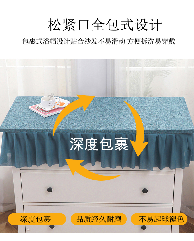 商品名称:2025新款防尘防滑斗柜套裙边-小树叶系列 水蓝