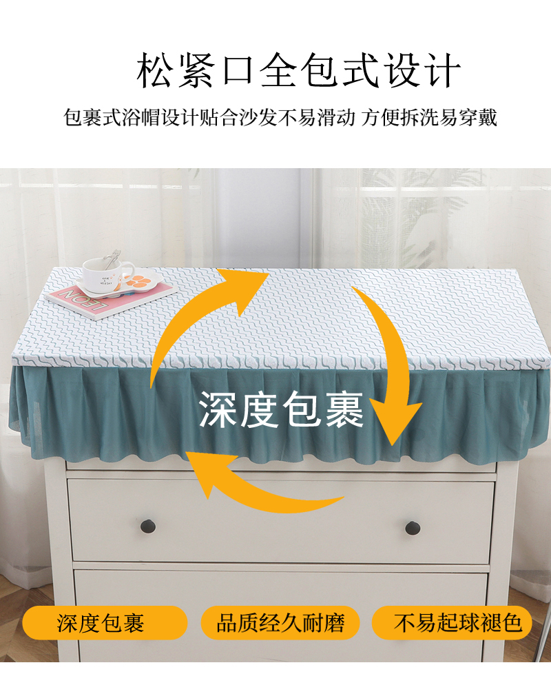 商品名称:2025新款防滑防尘斗柜套裙边-水波纹系列 浅蓝