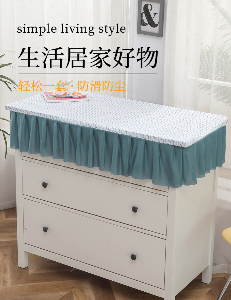 2025新款防滑防尘斗柜套裙边-水波纹系列 浅蓝