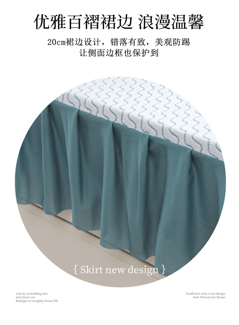 (总)千彤沙发垫 2025新款防滑防尘优雅百褶裙边全包款沙发笠沙发套罩--三叶草系列,浅灰,豆沙,孔雀蓝,浅绿,深灰,水蓝