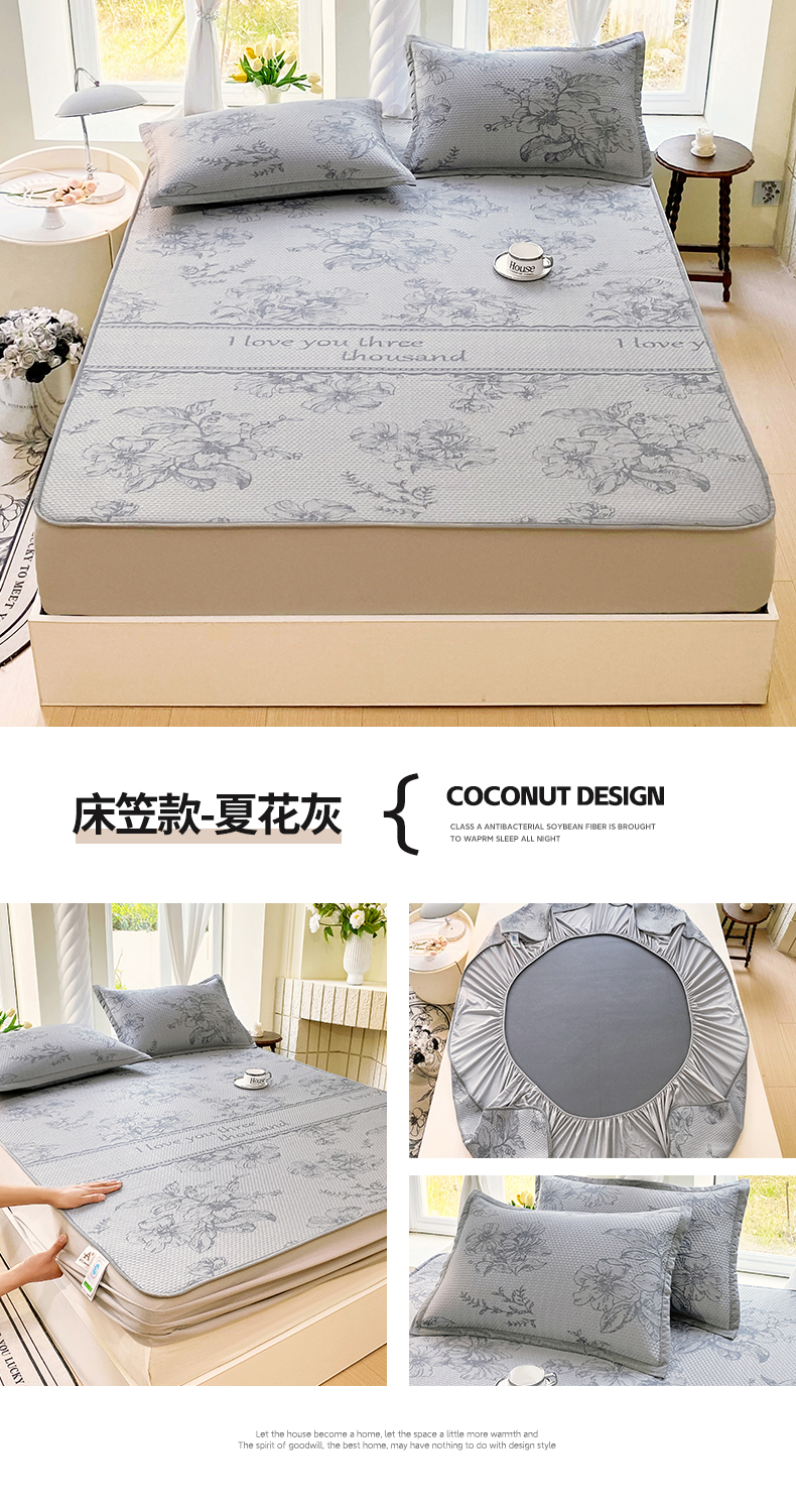 商品名称:宜家坊 2025新款A类PE中分子提花软凉席-花夏 床笠款-夏花金