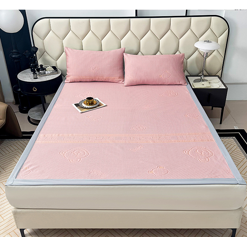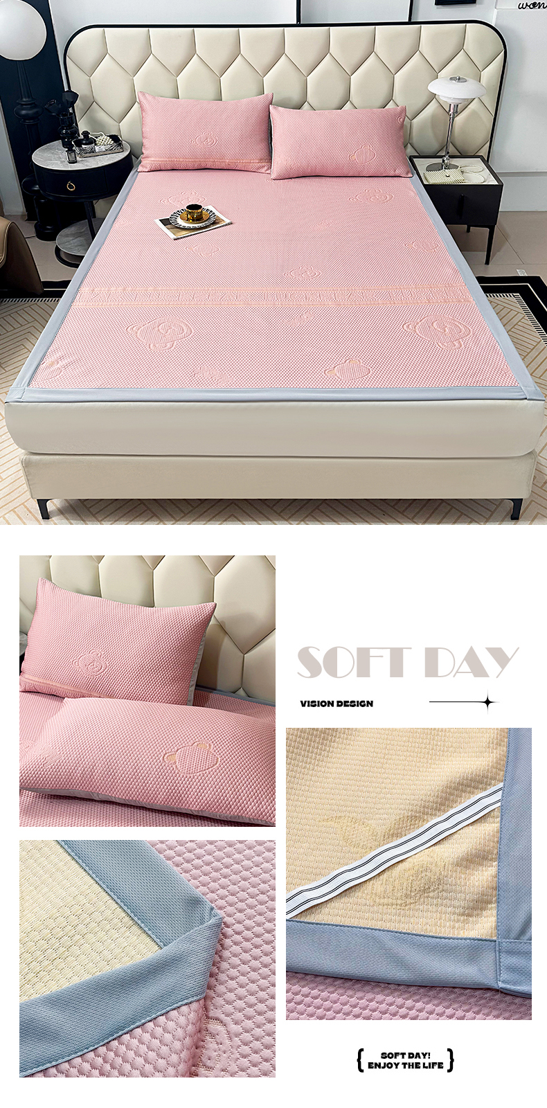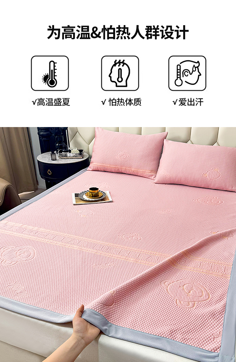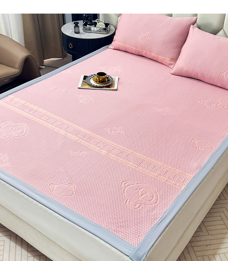 席皇后 2025新款亲肤简约纯色豆豆床裙款凉席 熊-粉