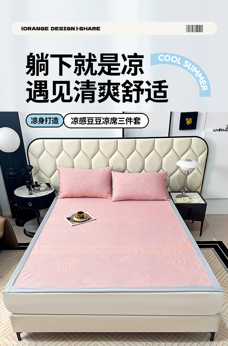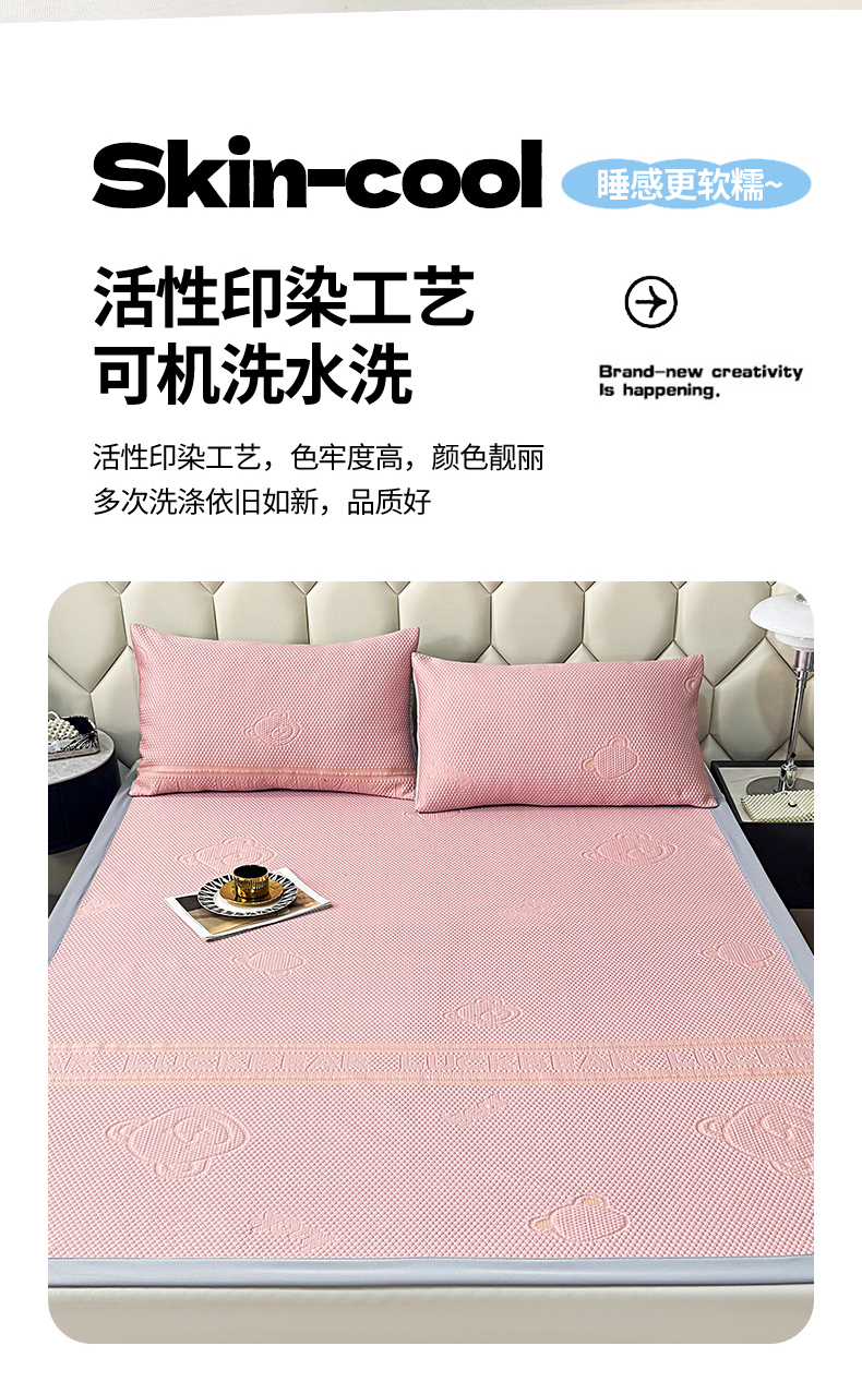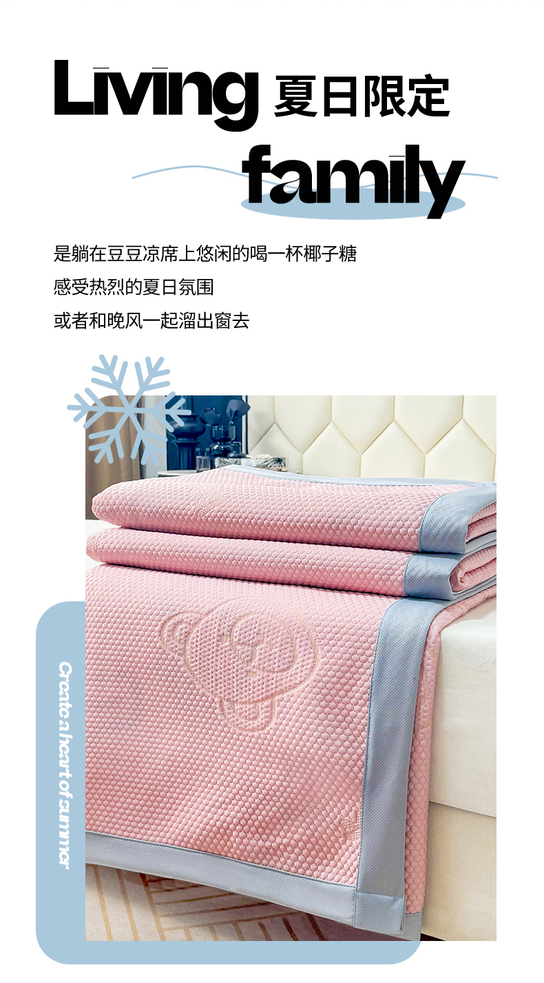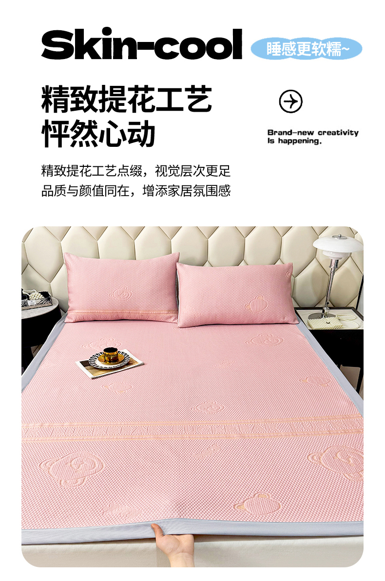 商品名称:席皇后 2025新款亲肤简约纯色豆豆床裙款凉席 熊-粉