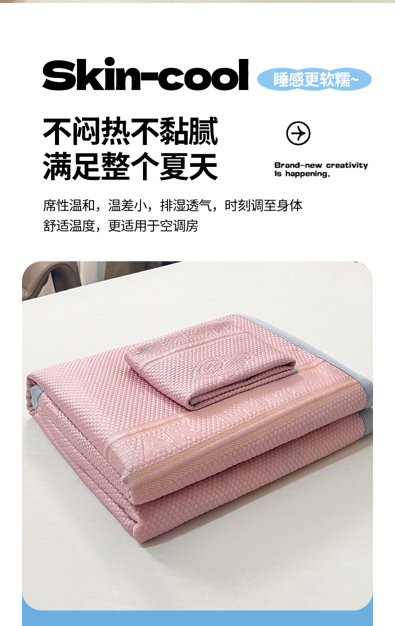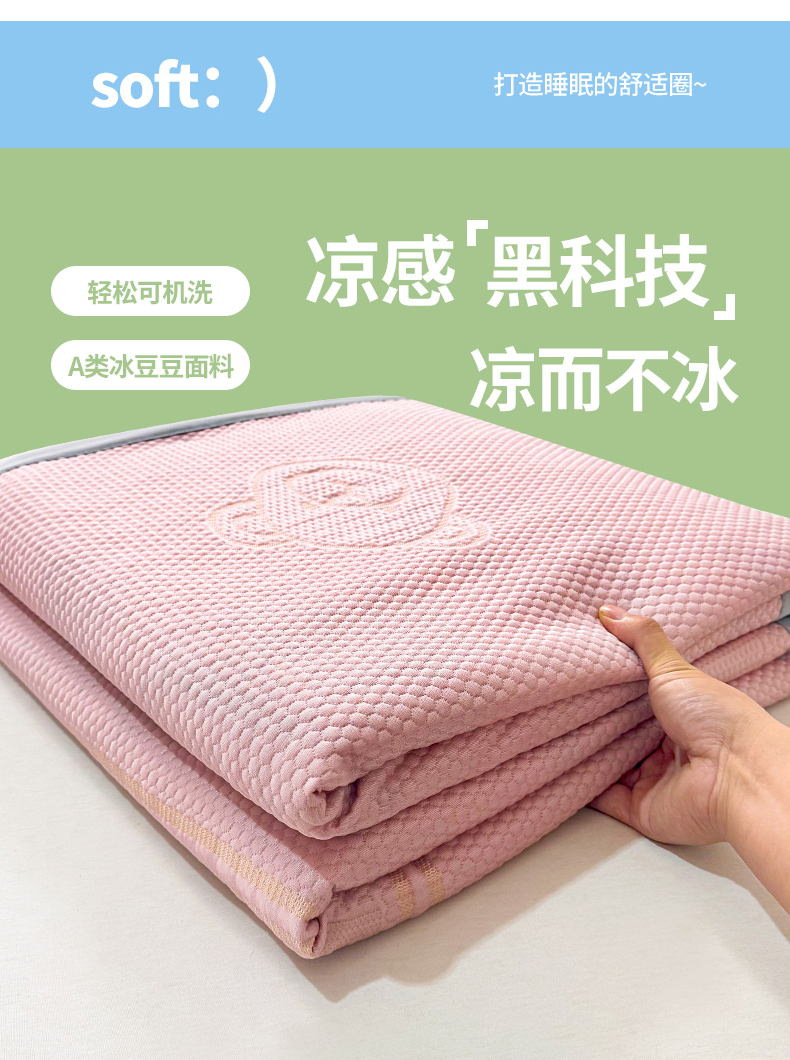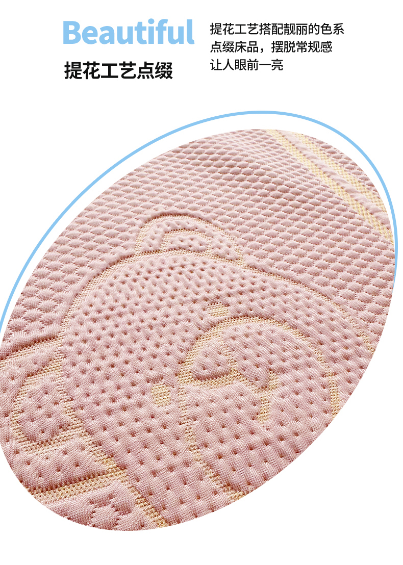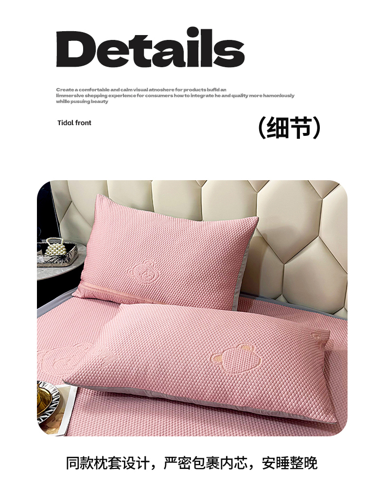 商品名称:席皇后 2025新款亲肤简约纯色豆豆床裙款凉席 熊-粉