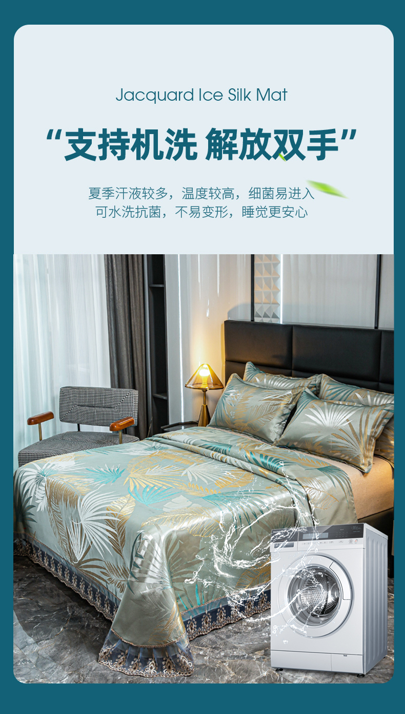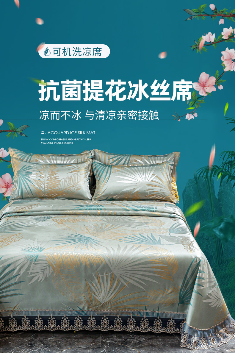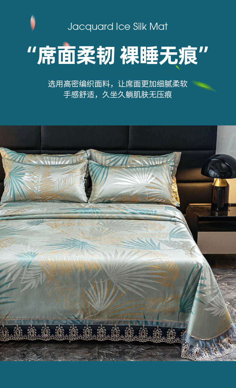 当前位置: 91家纺网 > 商品网购 > 床上用品 > 凉席 > 凉席套件 > 席皇后 2025新款可机洗抗菌提花冰丝席 富贵叶