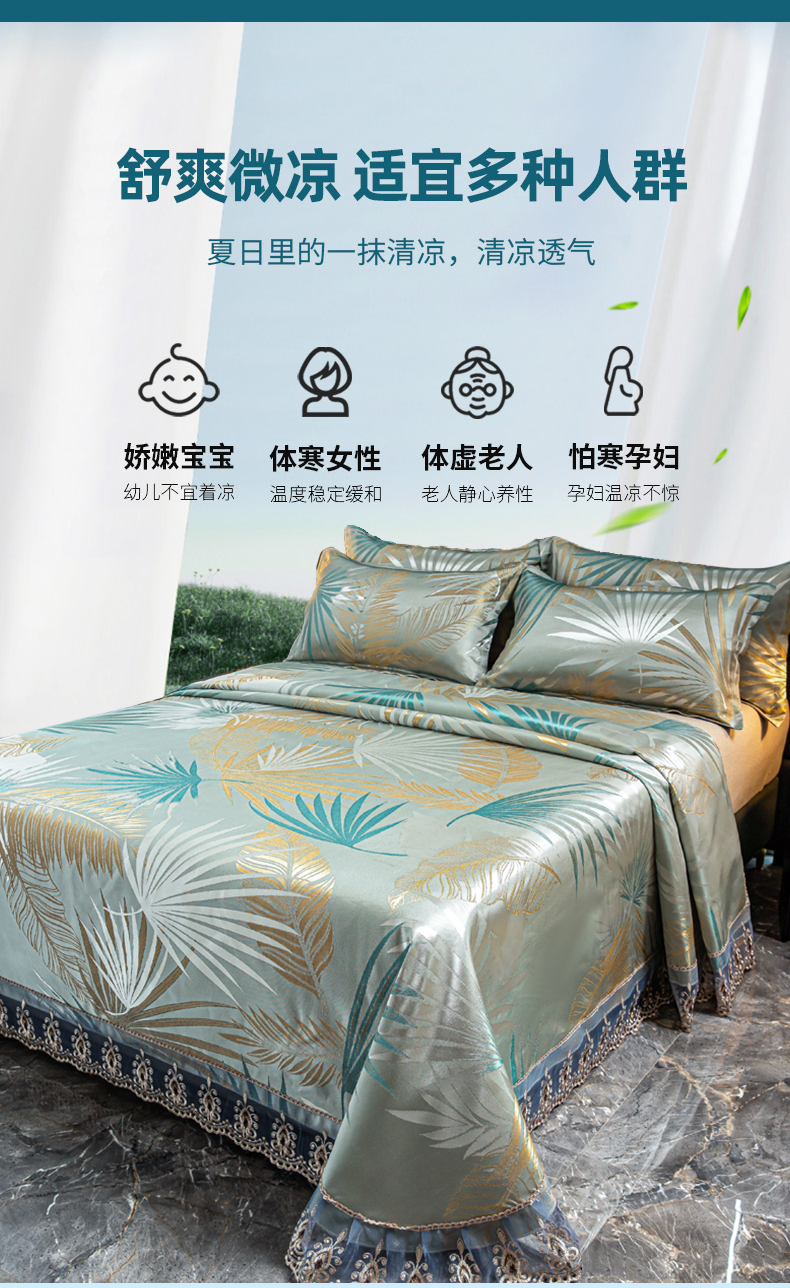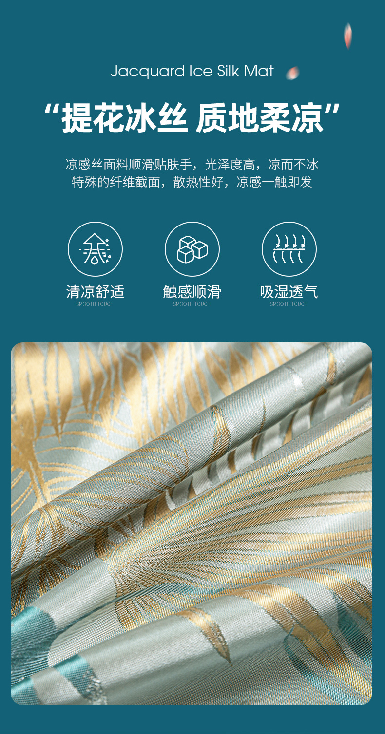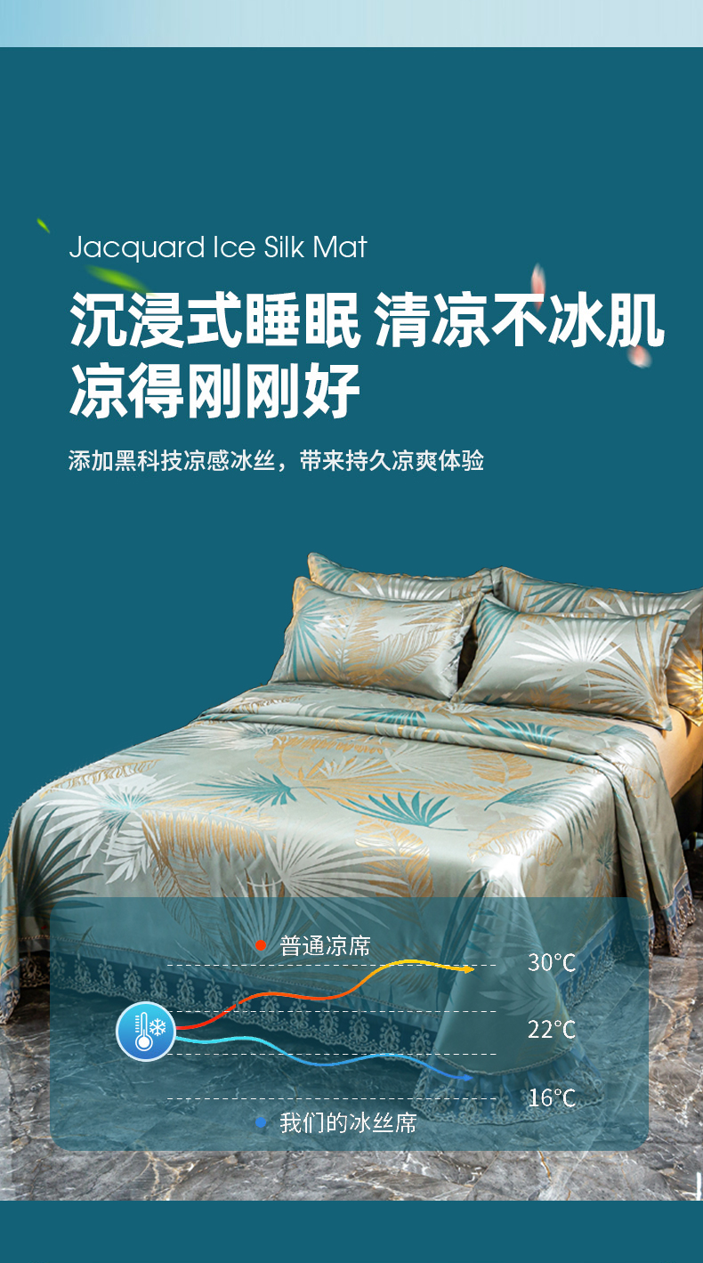 当前位置: 91家纺网 > 商品网购 > 床上用品 > 凉席 > 凉席套件 > 席皇后 2025新款可机洗抗菌提花冰丝席 富贵叶