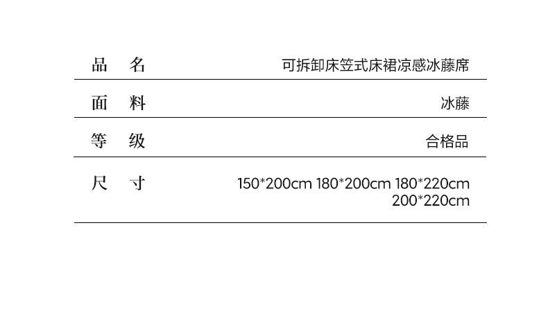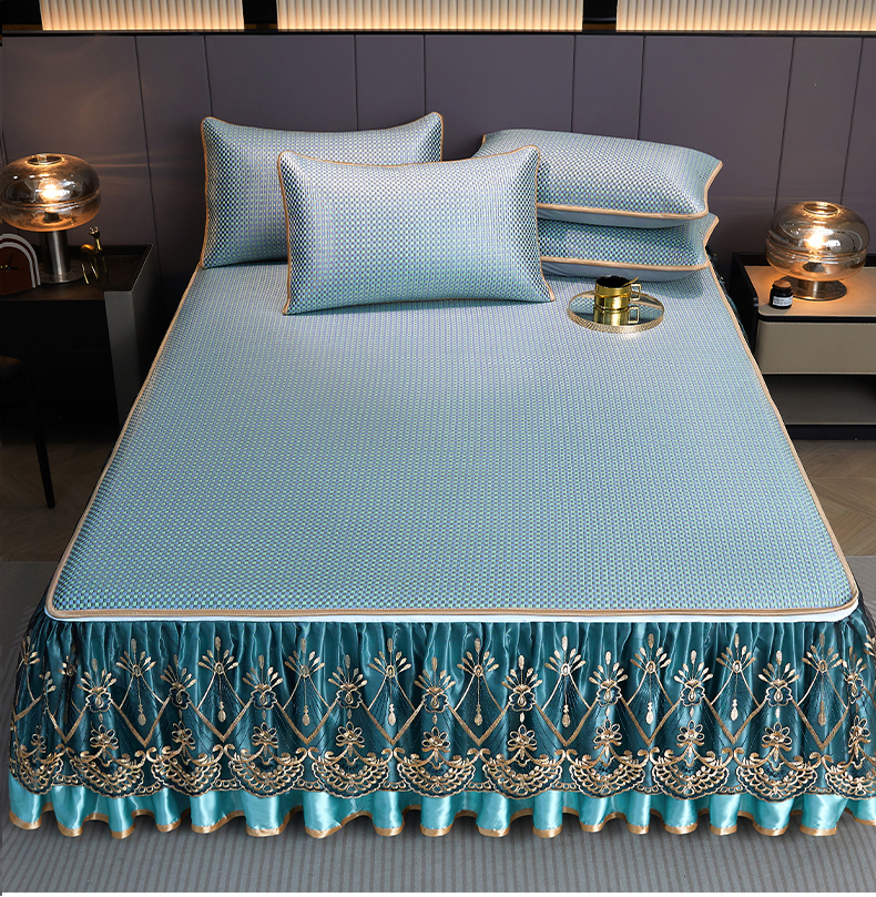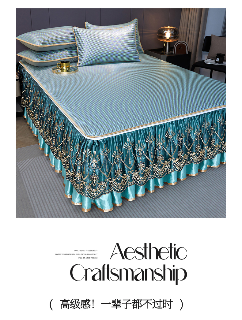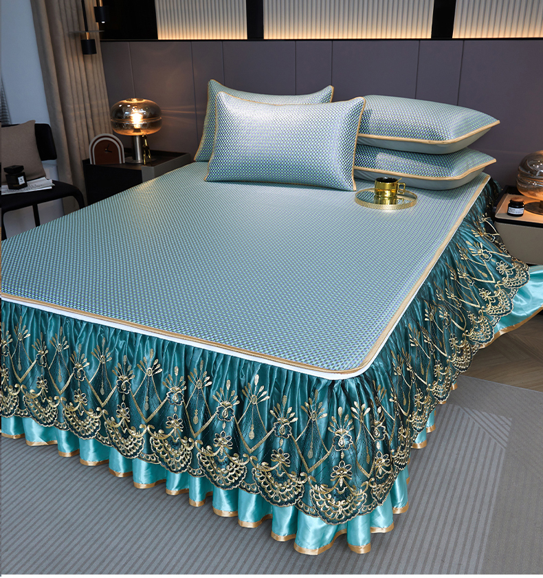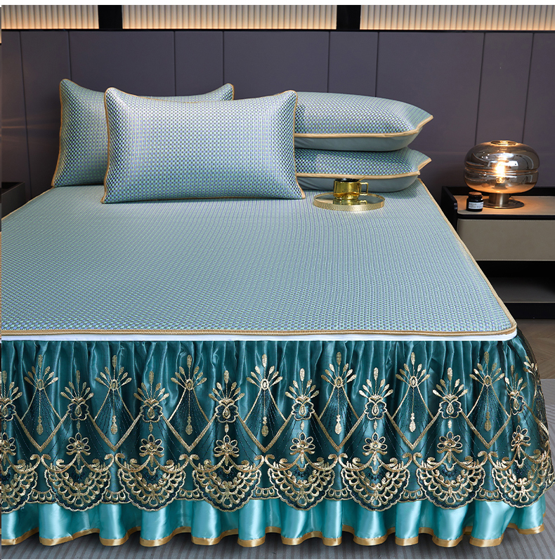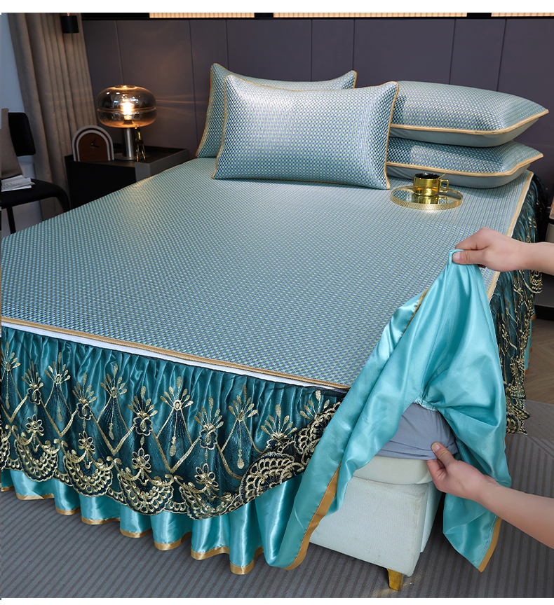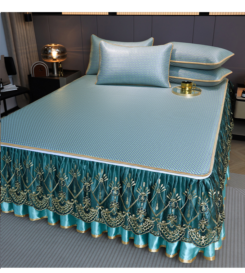 商品名称:罗艺轩 2025新款可拆卸床笠式床裙凉感冰丝藤席三件套-爱星海 爱星海-绿紫色