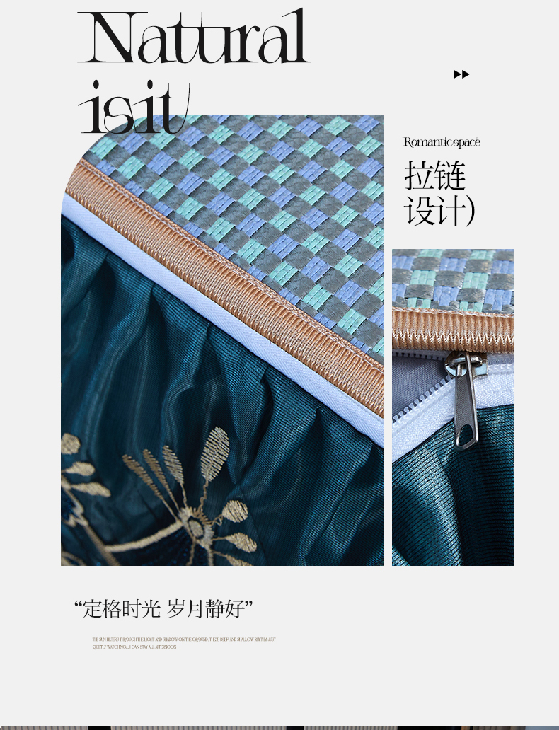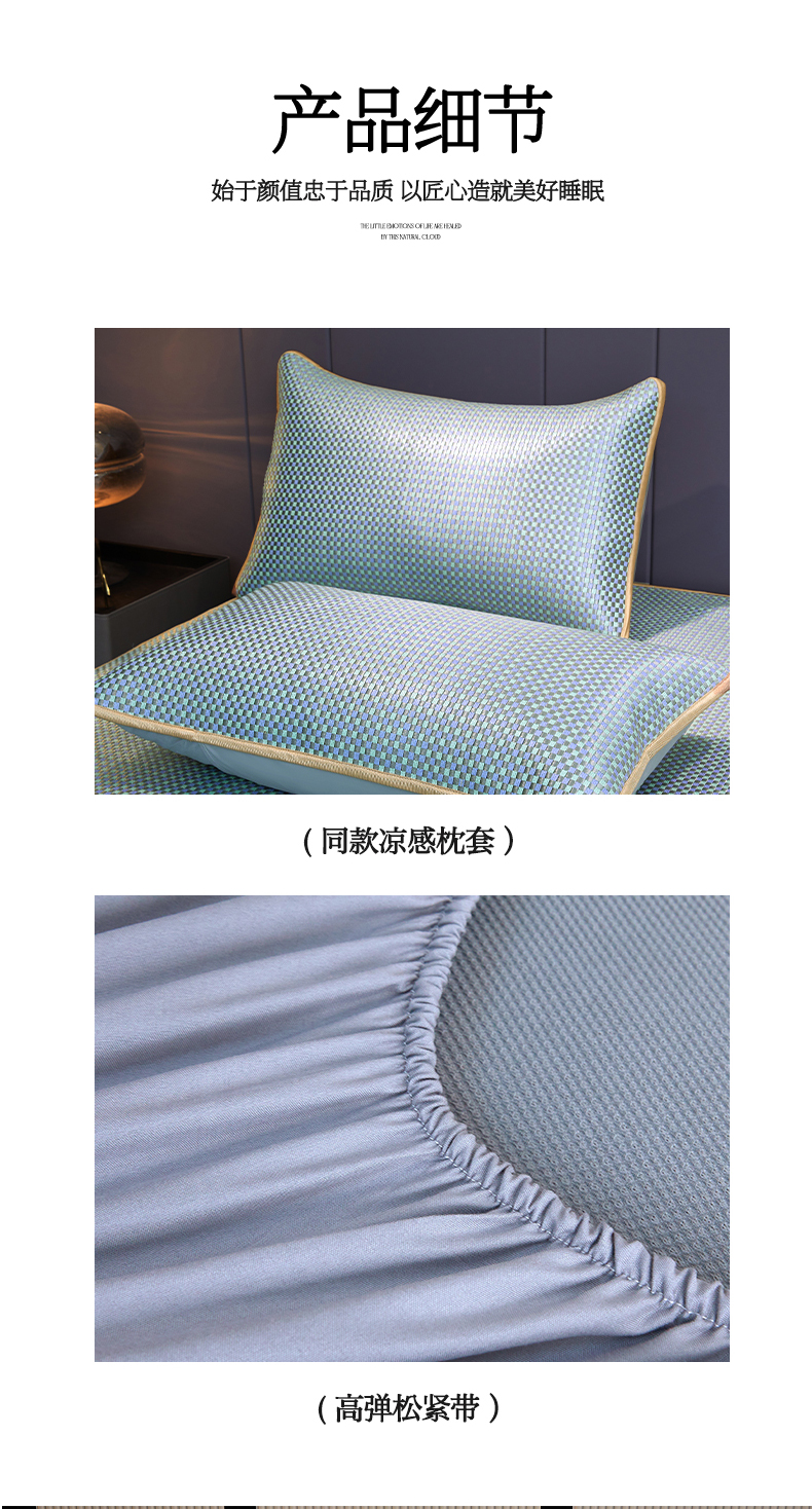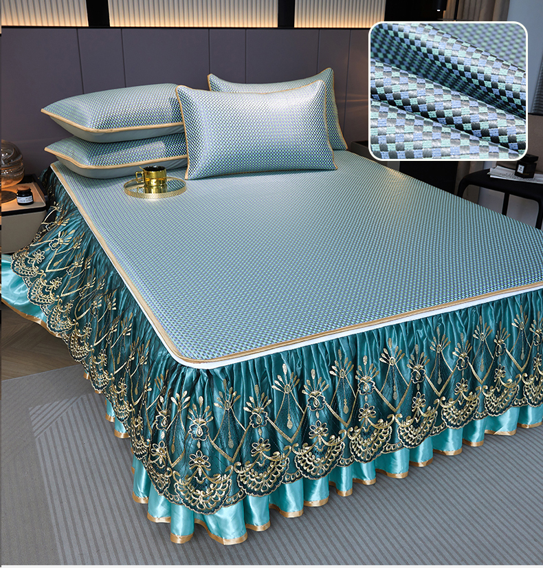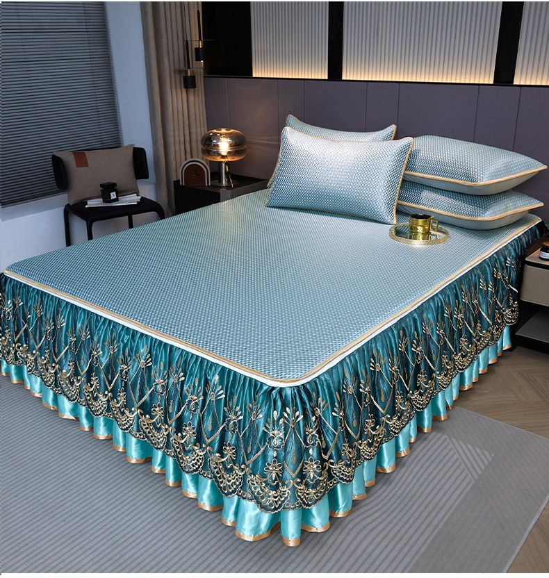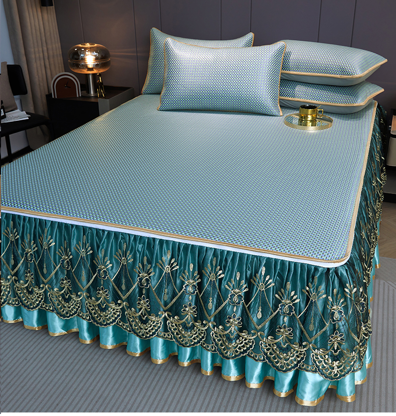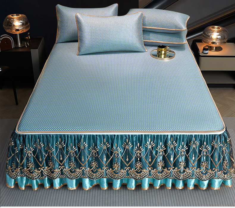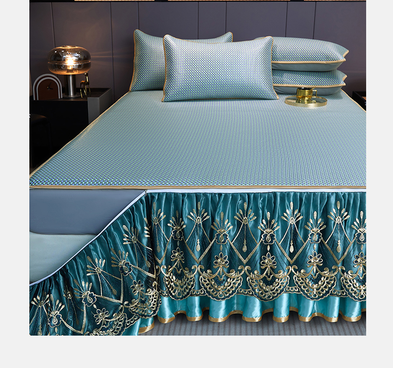 商品名称:罗艺轩 2025新款可拆卸床笠式床裙凉感冰丝藤席三件套-爱星海 爱星海-绿紫色