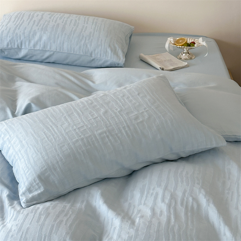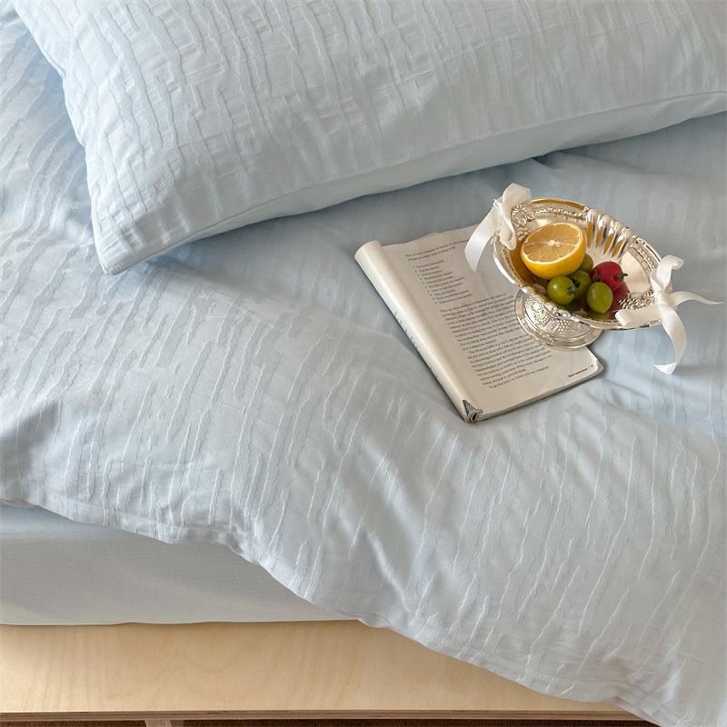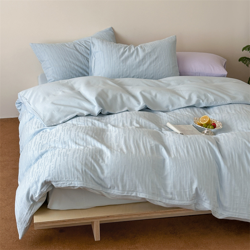 小春日和 纯棉色织双层纱四件套提花被套纯色加大床单1.8床笠民宿风高端不规则条纹四件套 觅光-兰
