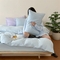 (总)小春日和 2025新款全棉提花条纹四件套纯棉人字纹水洗提花绑带款四件套民宿四件套纯色床单1.8床笠简约被套,云漫