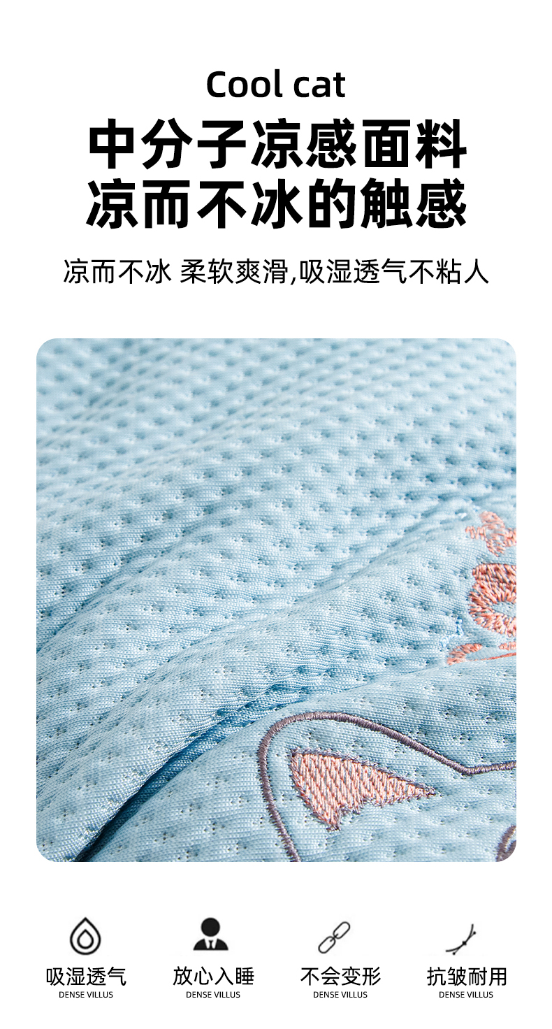 凉感立体猫咪枕-蓝色 30x50cm/只