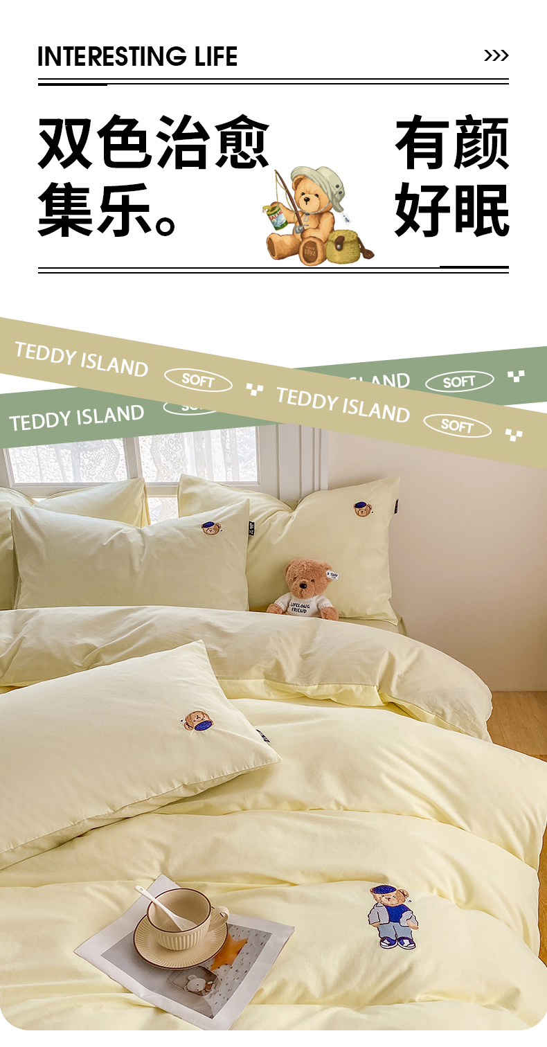 (总)泰迪爱兰Teddy ISLAND 2025新款32支全棉水洗棉绣花三件套四件套