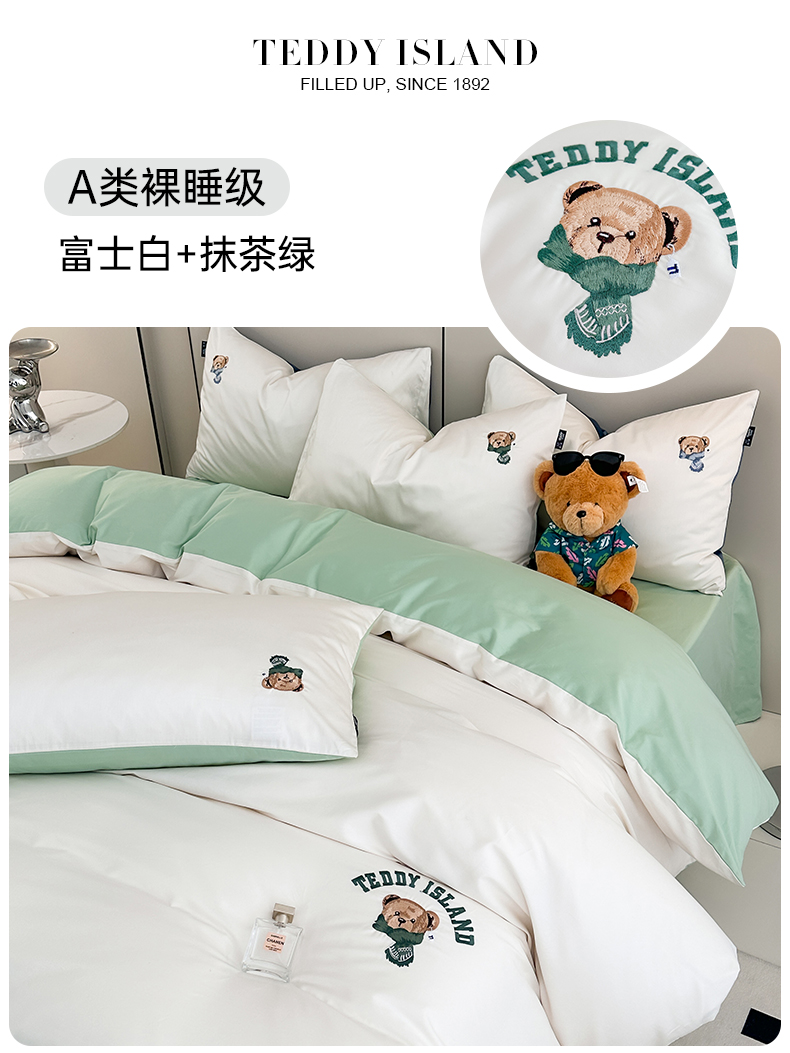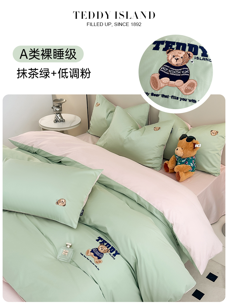(总)泰迪爱兰Teddy ISLAND 2025新款40支全棉印花刺绣四件套,烟雨花间,印记时光,童年诗篇,挽夏-绿,迪莉娅,守护甜心,素然-米