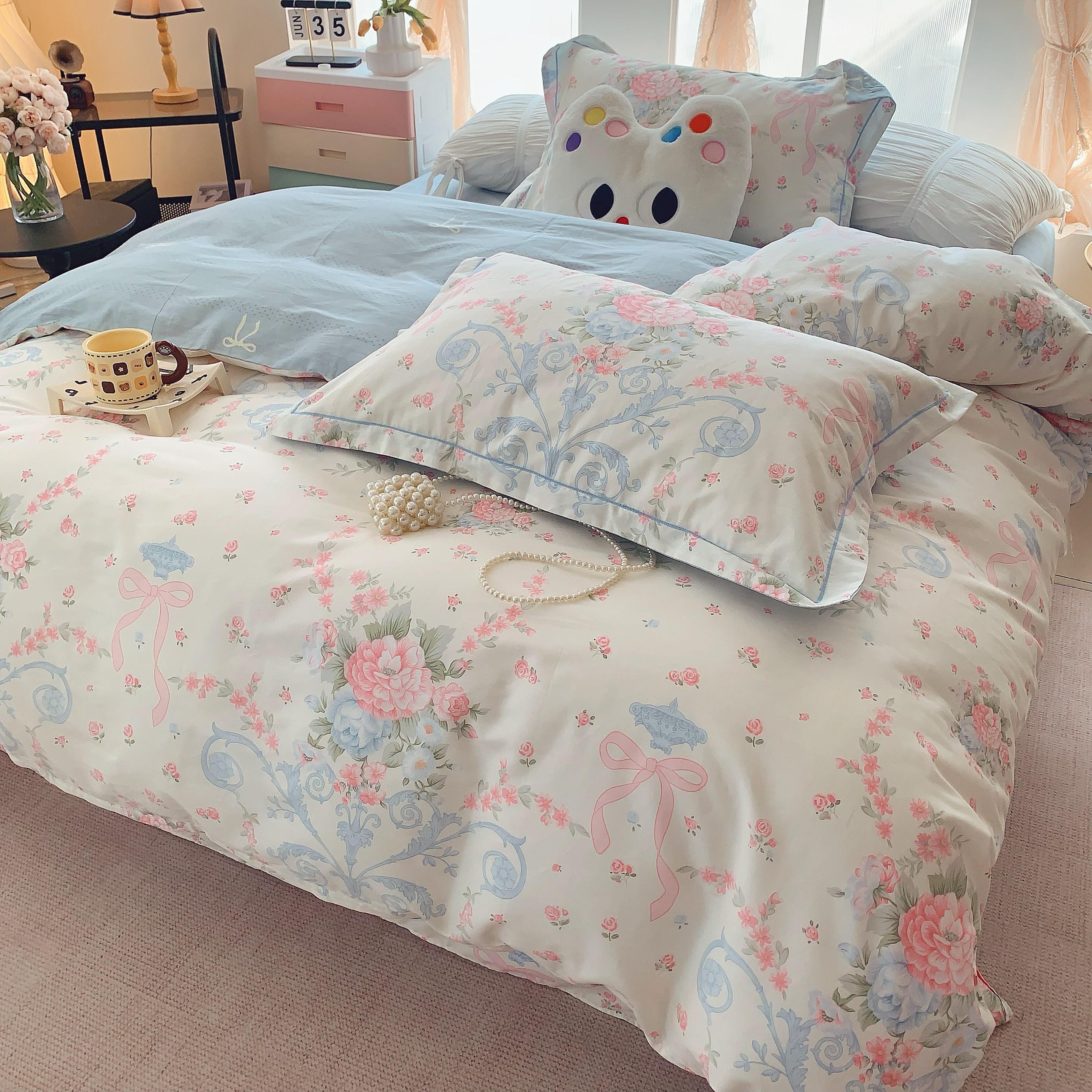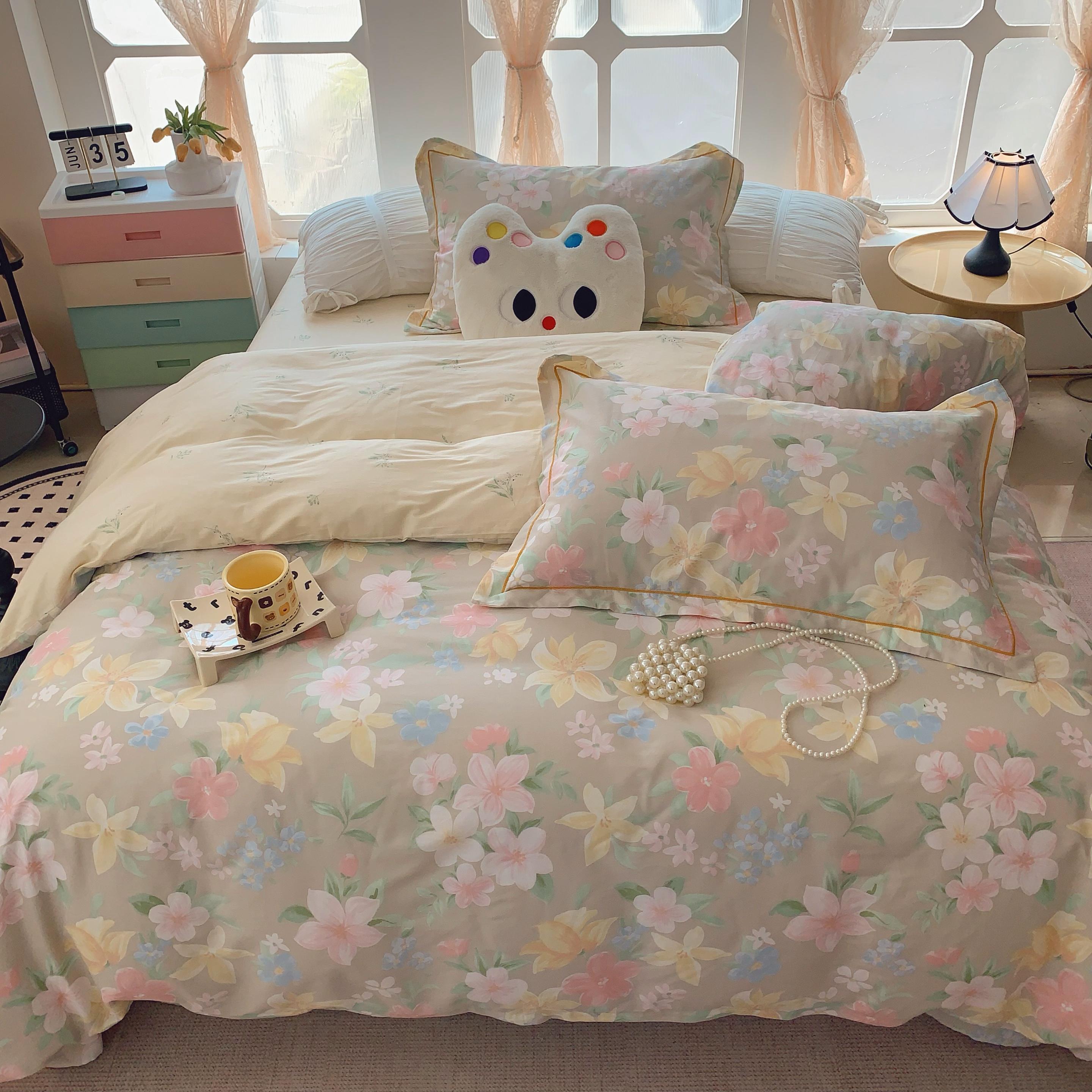 商品名称:莱豫家纺 2025新款亲肤舒适小清新印花纯棉四件套 蒂芙娜