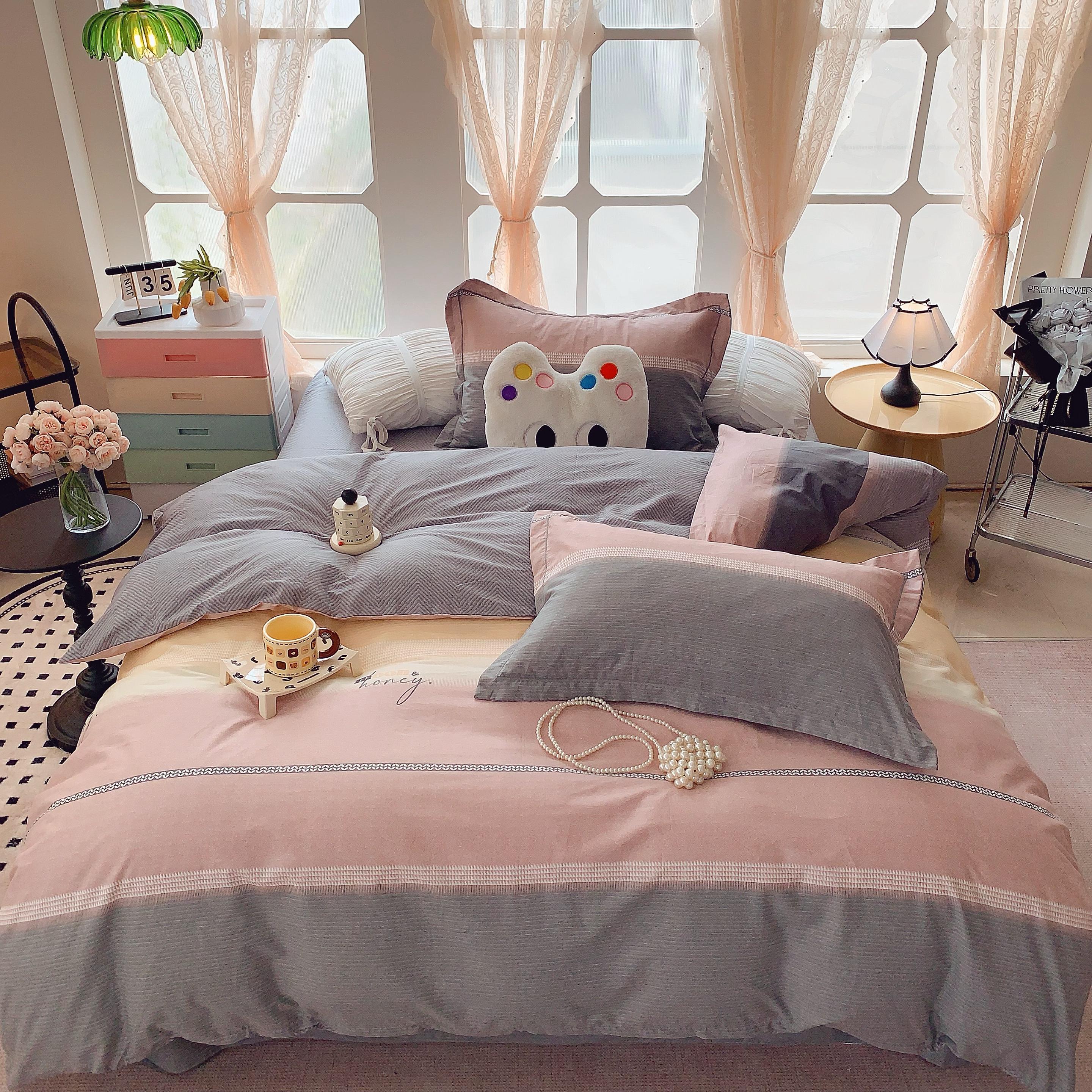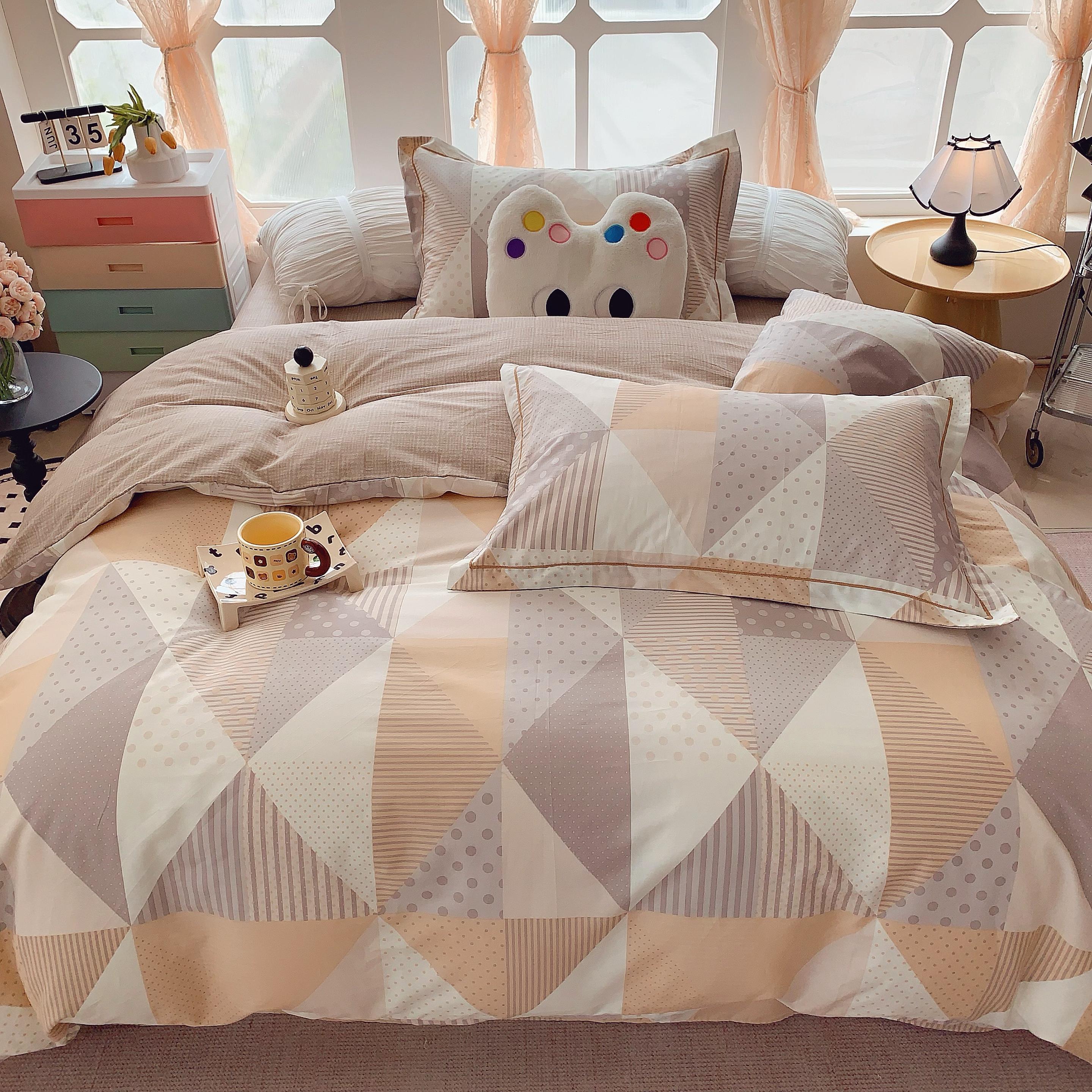 (总)莱豫家纺 2025新款小清新全棉纯棉四件套,爱心豹纹,白薇,春黛,芳华,锦绣咖,锦绣米,可爱狗狗咖,太空超人,甜橘,童年,仙本娜,小飞马,小小花园,星星人黄,星星人蓝,雅蔓