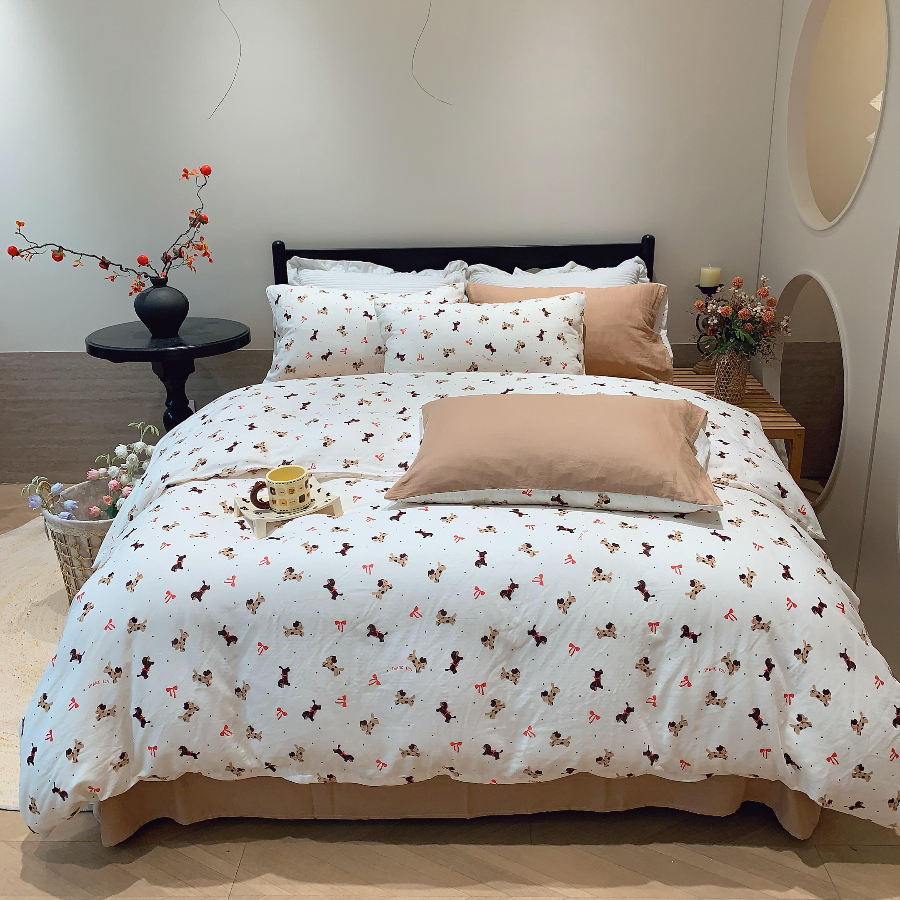 莱豫家纺 2025新款亲肤舒适双层纱四件套 礼物狗狗