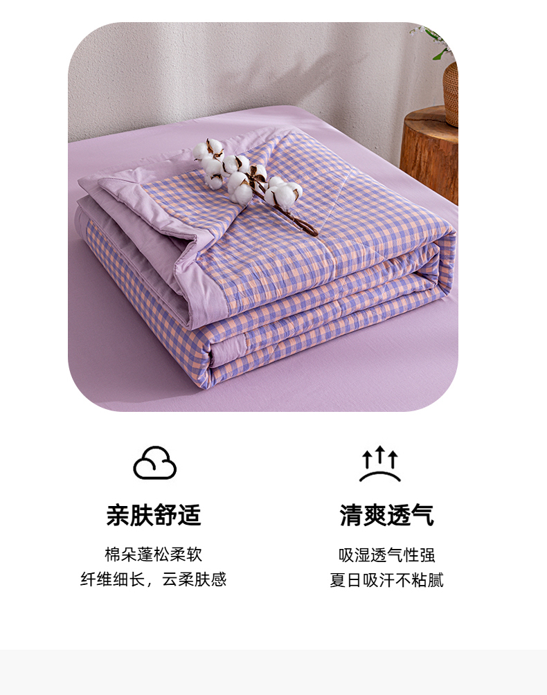 天瑜 2024全棉夏被棉花芯纯色水洗棉夏凉被可水洗空调被 优雅紫,优雅紫