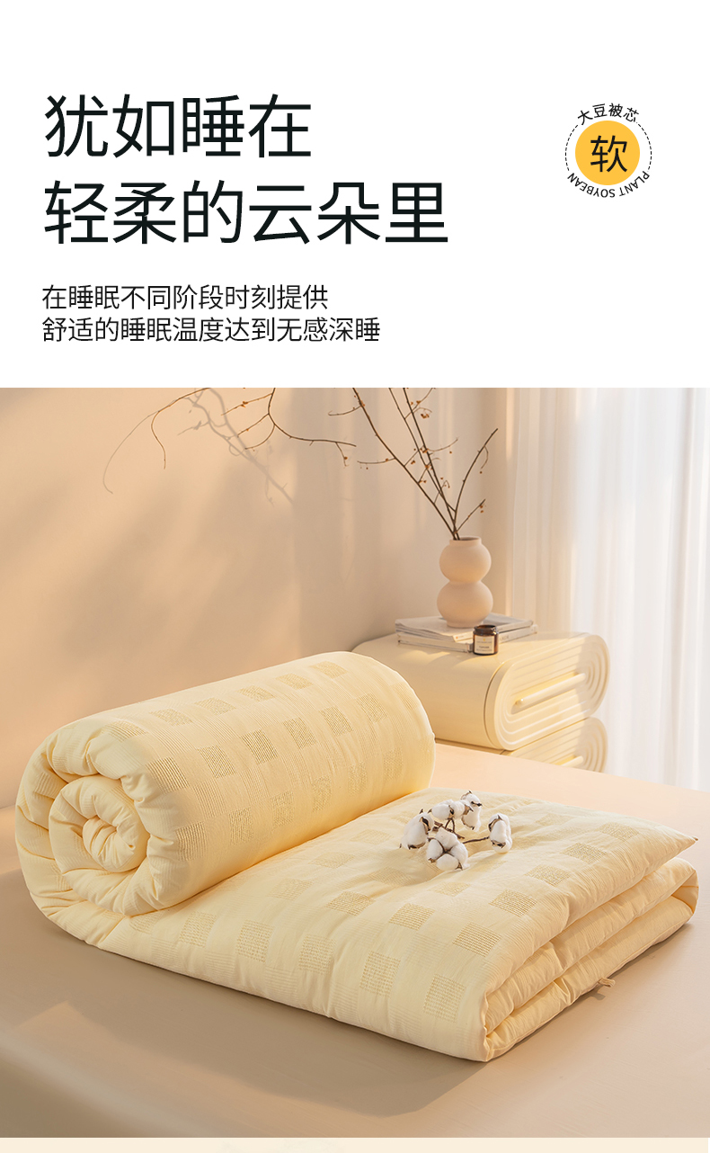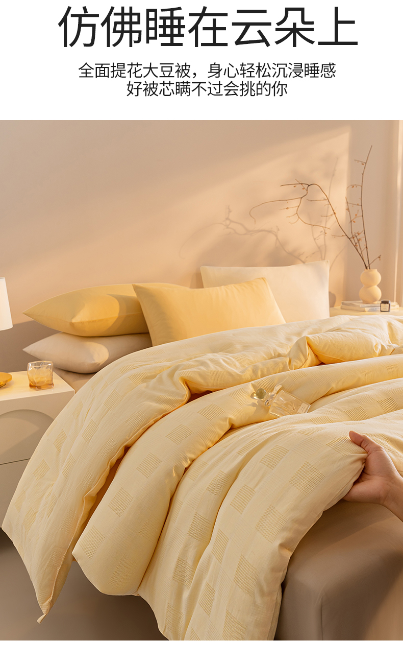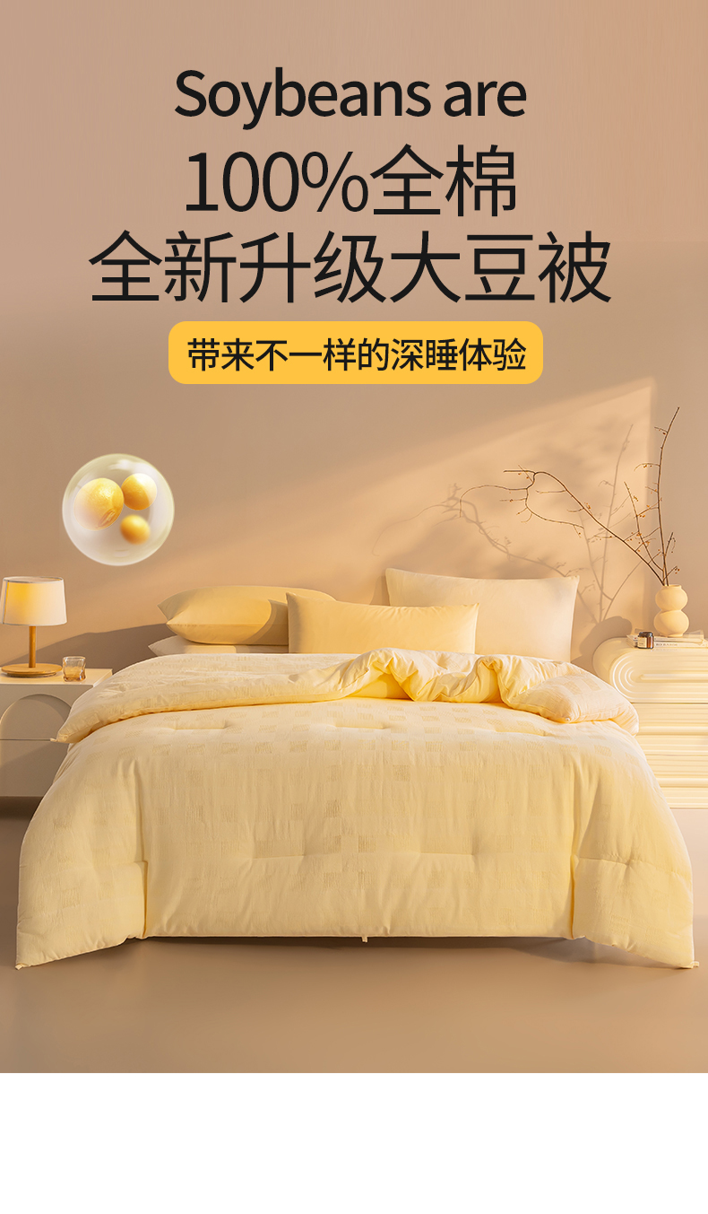 • 91家纺网 家纺一手货源 找家纺 阳光被业 2025新款100%纯棉提花大豆春秋被高端全棉面料冬被被子被芯学生夏被 米黄