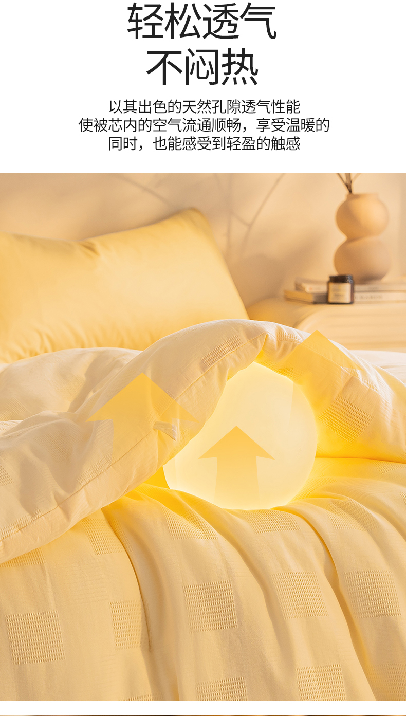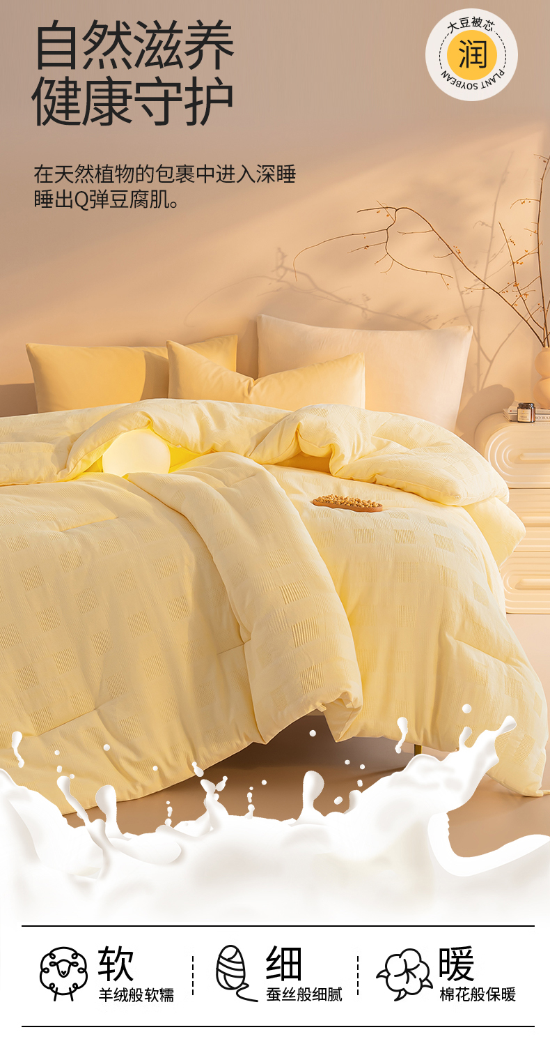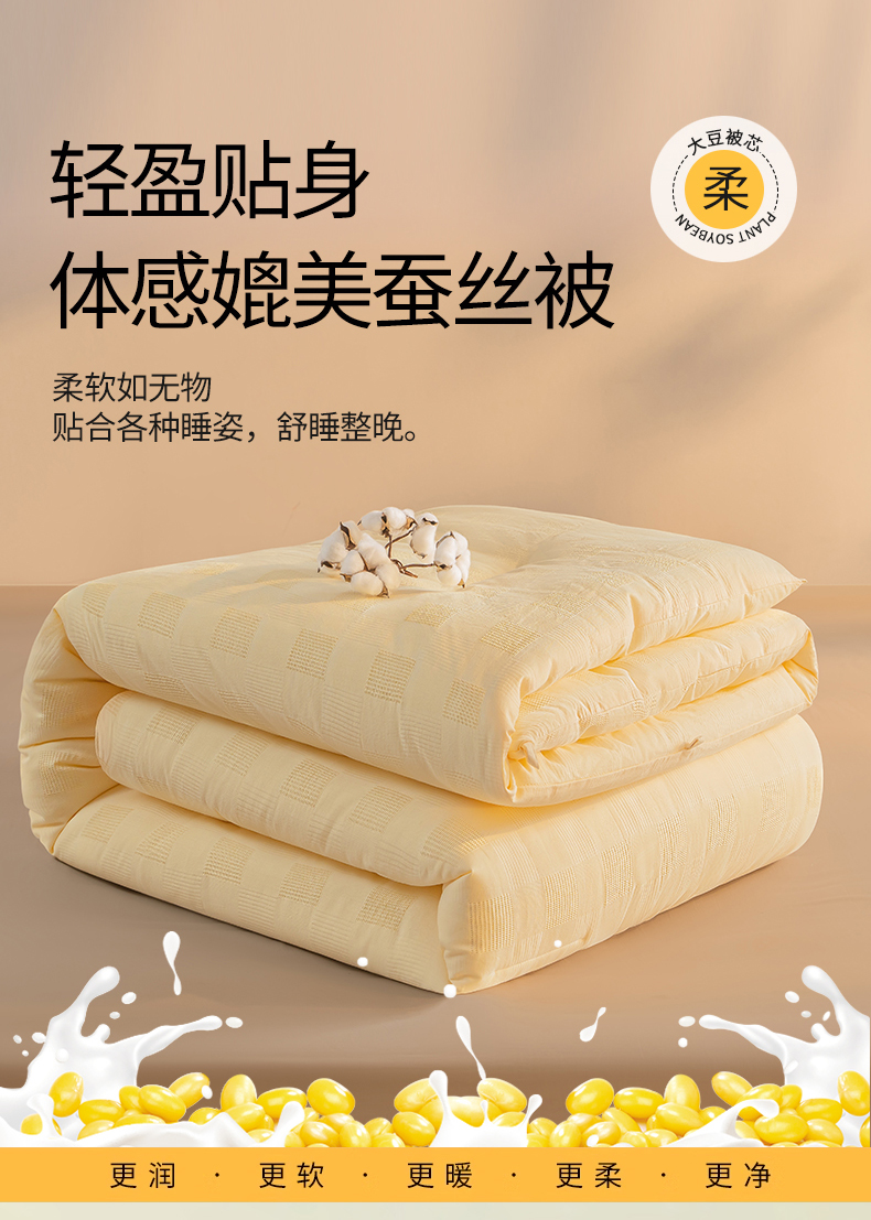 • 91家纺网 家纺一手货源 找家纺 阳光被业 2025新款100%纯棉提花大豆春秋被高端全棉面料冬被被子被芯学生夏被 米黄