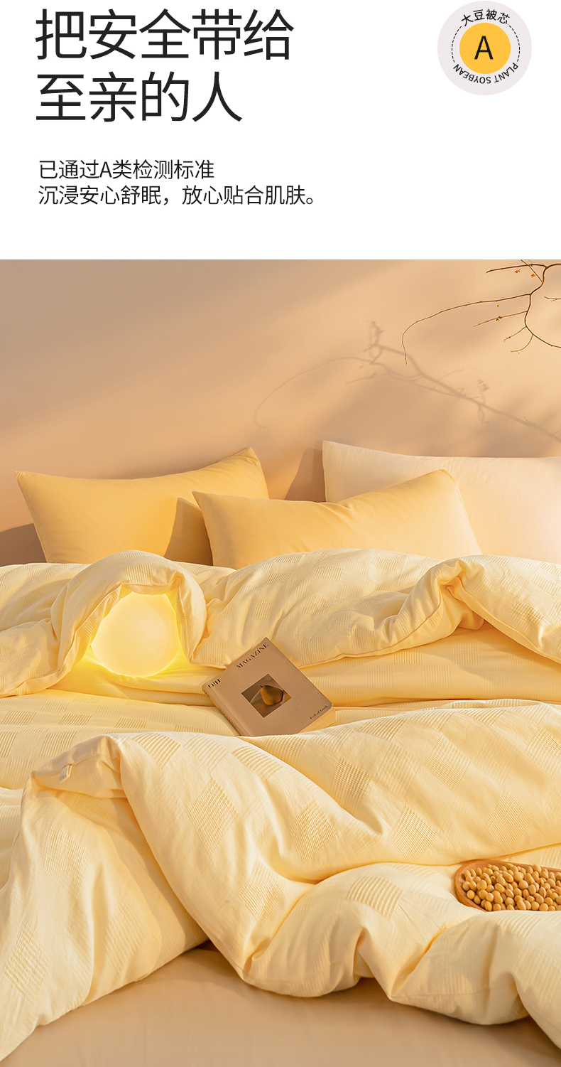 (总)阳光被业 2025亚朵同款A类针织棉大豆被春秋被四季被A类针织棉芯秋冬保暖被子,朦胧黄,深睡蓝,柔云粉