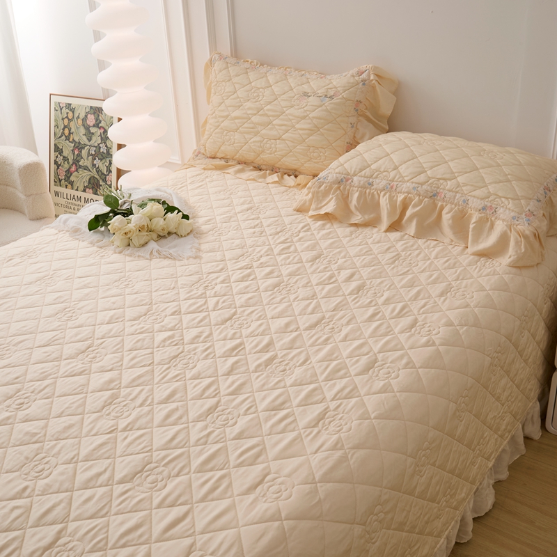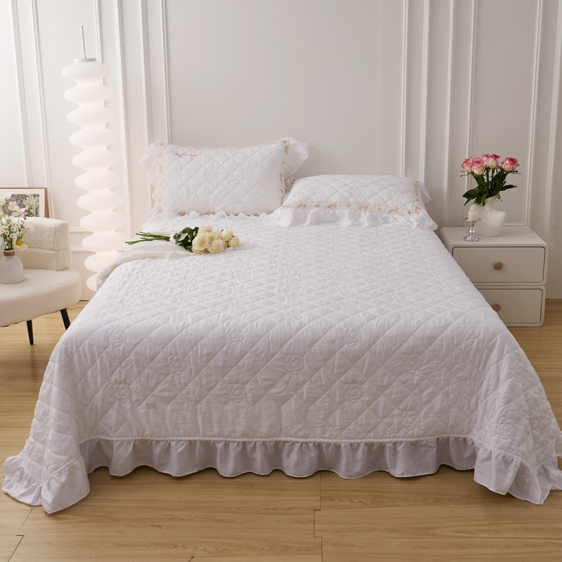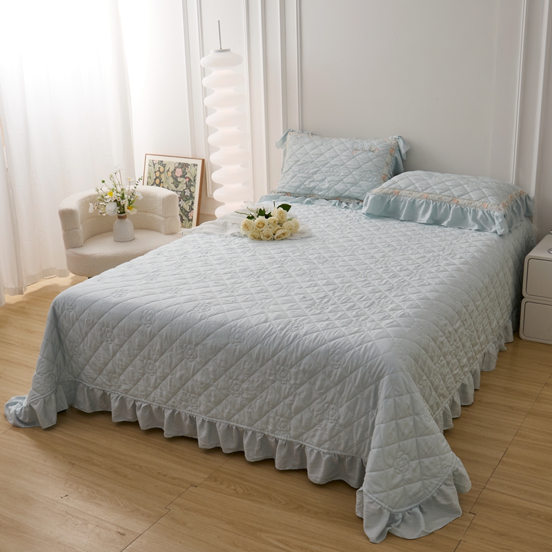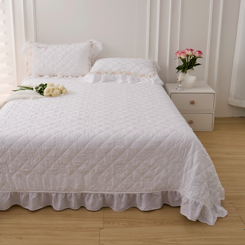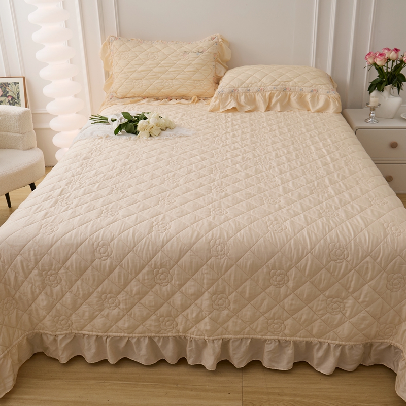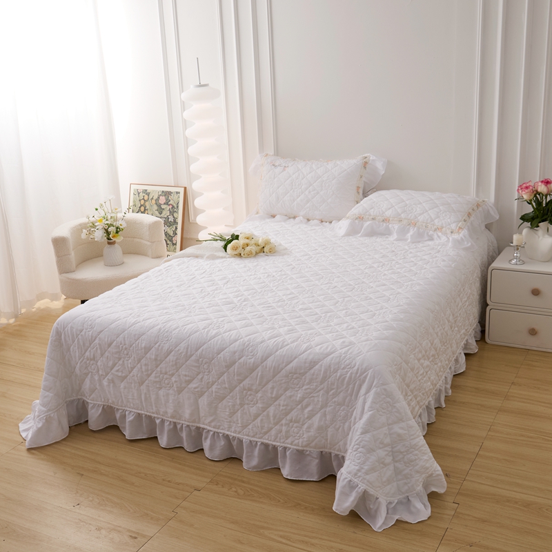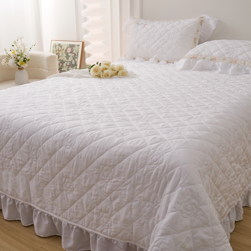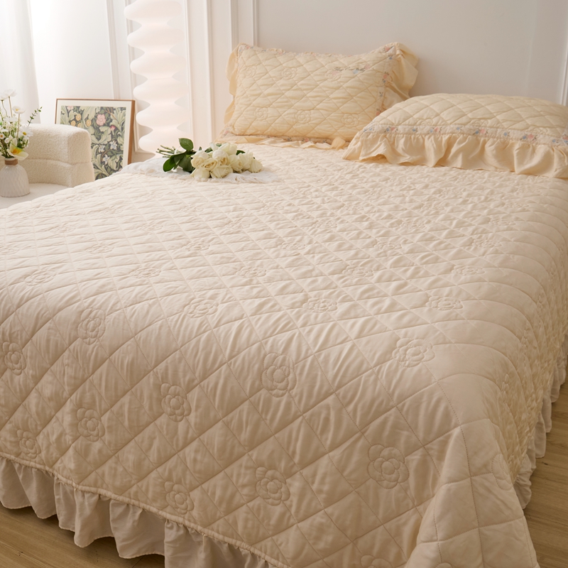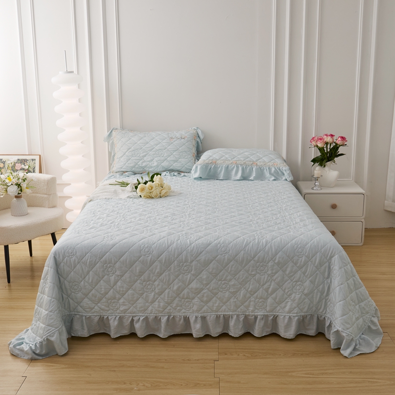 (总)上喜 2025新款全棉砂洗床盖新升级第五代,白色,湖蓝,奶油米,深灰,深咖