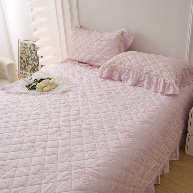 (总)上喜2025新款韩国全棉砂洗床盖系列,粉色,黄色,灰色,绿色,紫色