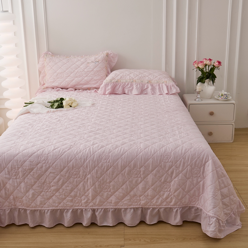 (总)上喜 2025新款全棉提花刺绣款床盖四件套,粉色,卡其色,绿色,香槟色,紫色