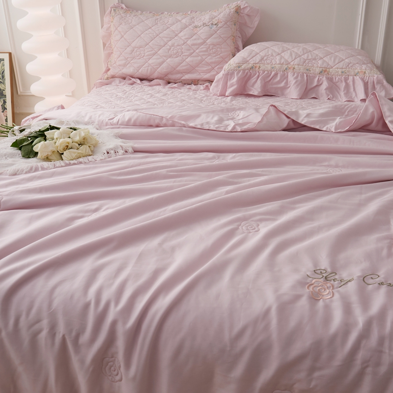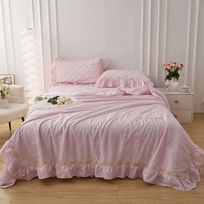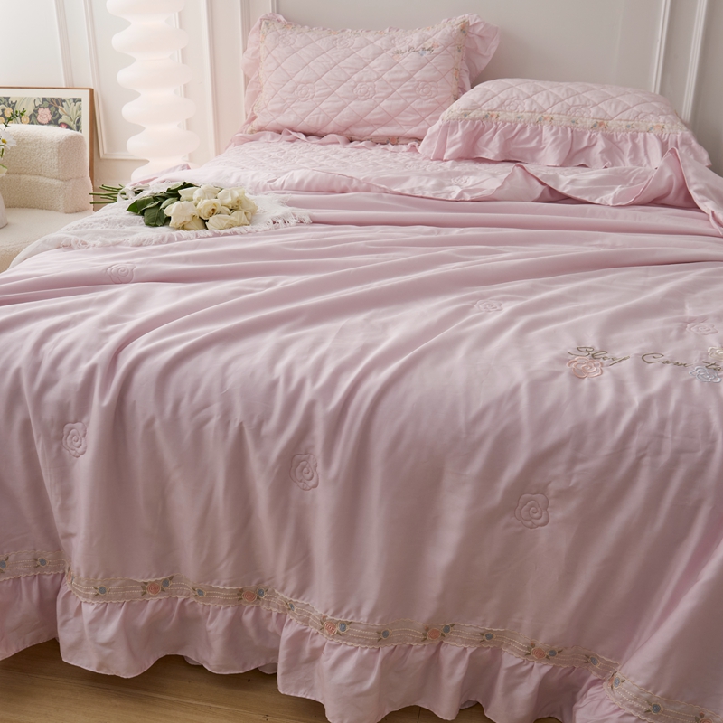 (总)上喜 2025新款棉麻小花刺绣款床盖多功能被子系列,麻本色,麻粉色