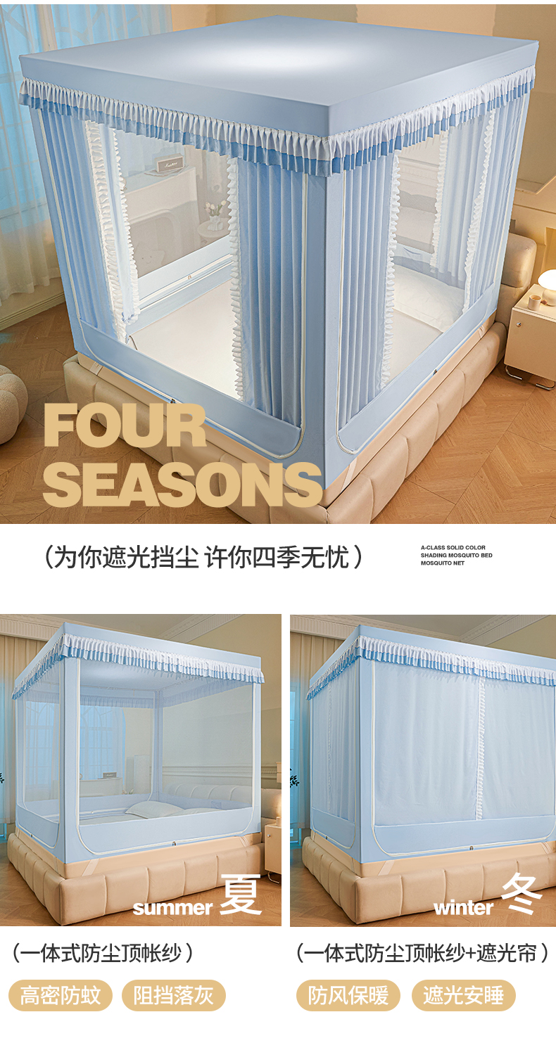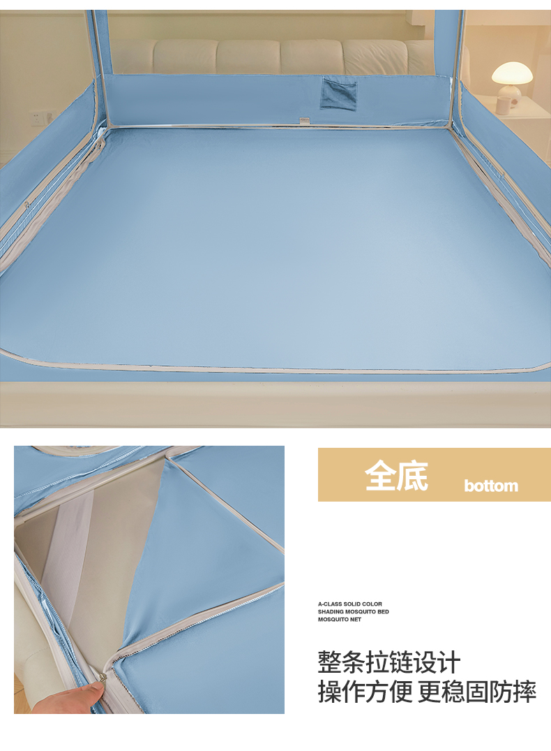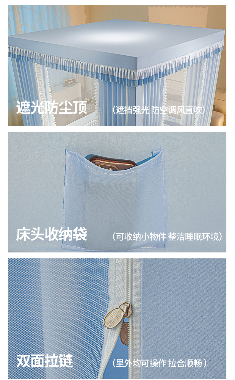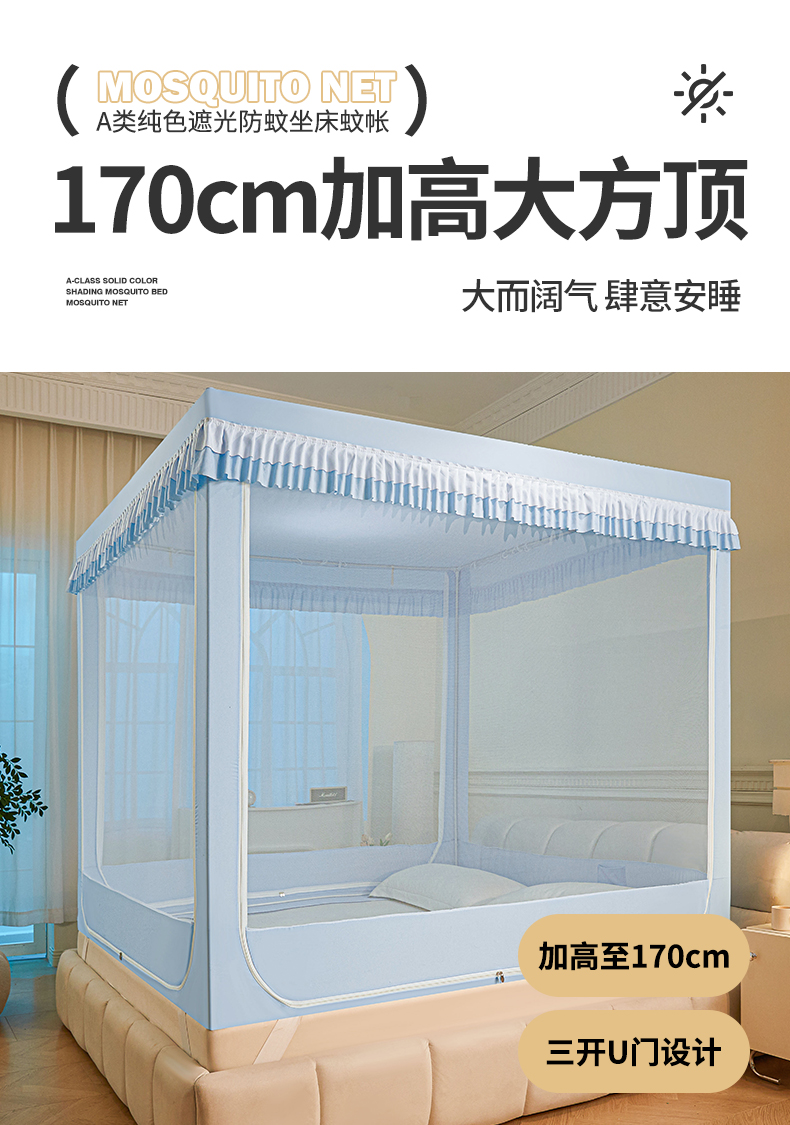 当前位置: 91家纺网 > 商品网购 > 床上用品 > 蚊帐 > 坐床式蚊帐 > 浪幔纱蚊帐 2025新款A类遮光防摔蚊帐坐床拉链全底回底纯色加厚支架 舒雅蓝【全底无帘款】
