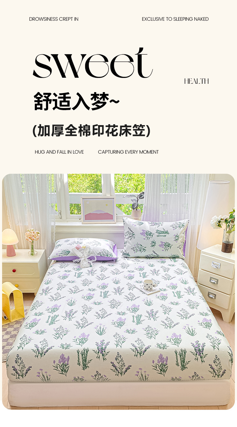 商品名称:黑马家居 2025新款全棉纯棉印花单床笠床笠单件 薰衣草