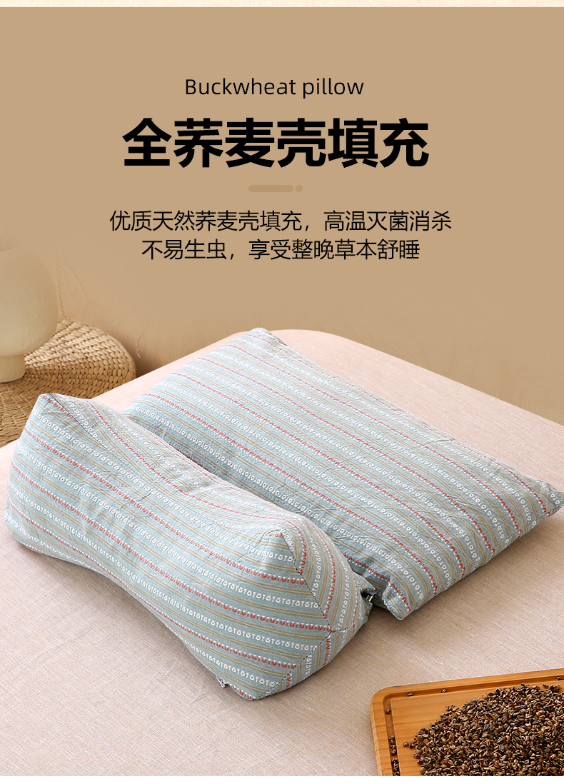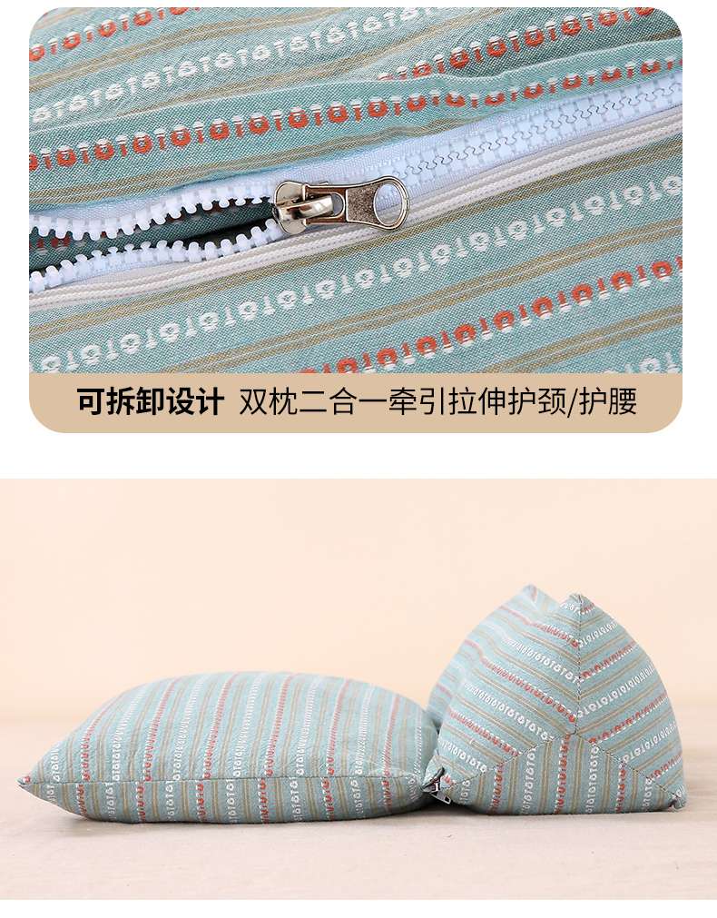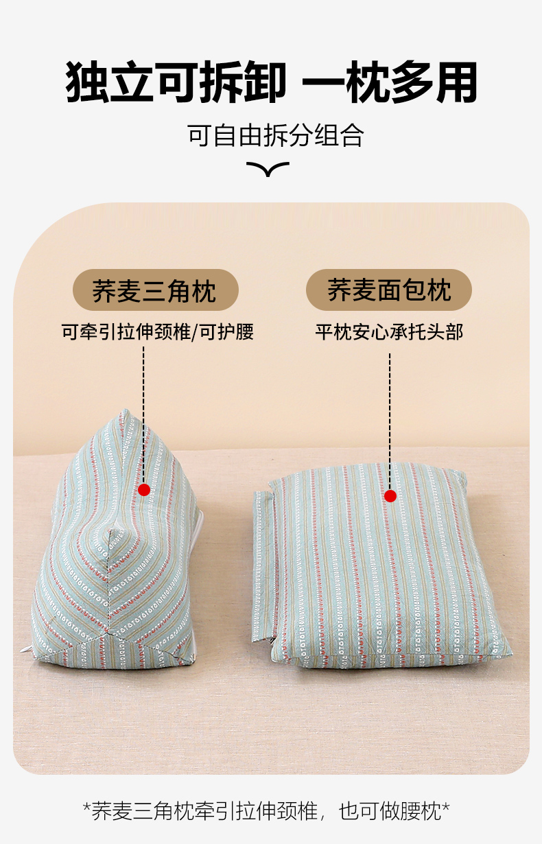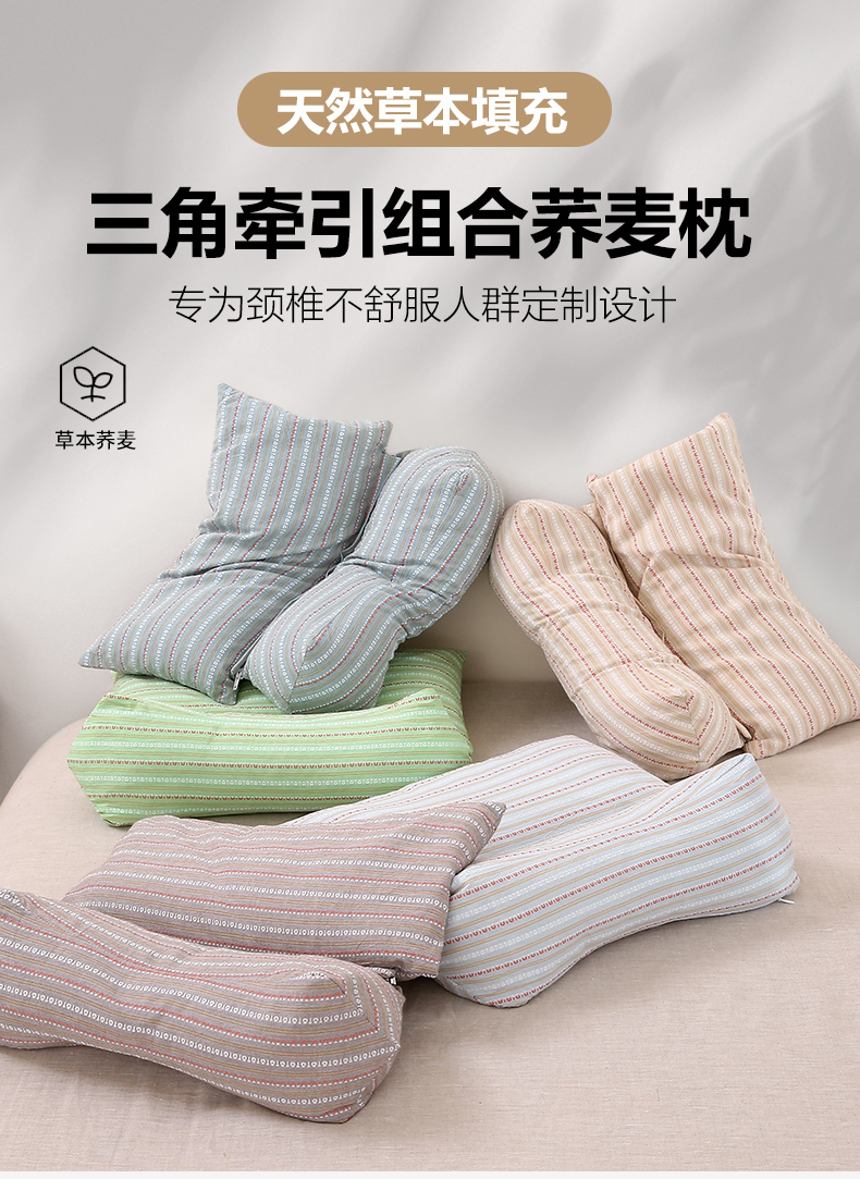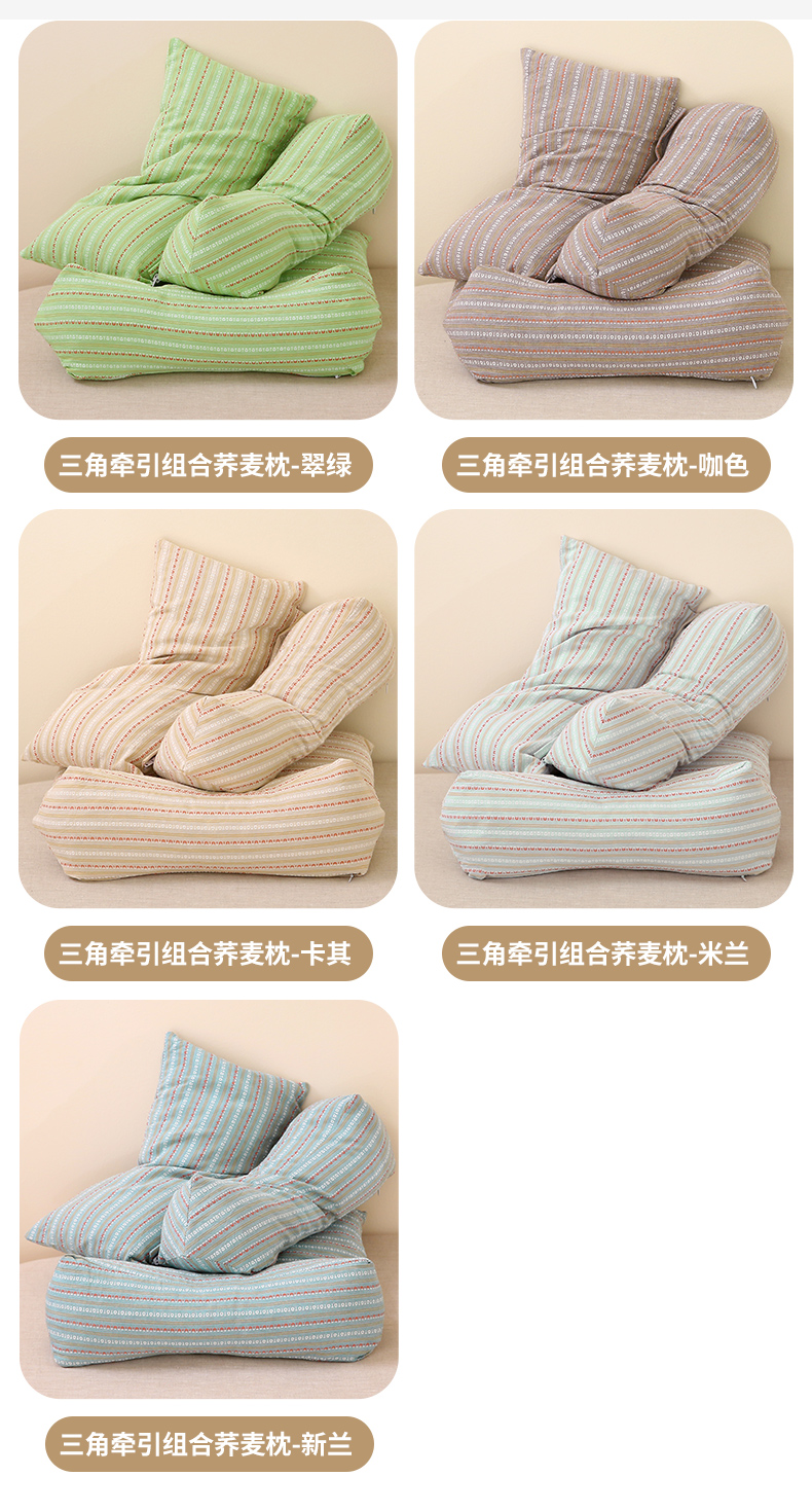 商品名称:(总)梦叶草 2025新款全棉水洗棉三角牵引组合荞麦枕 枕头护颈枕芯