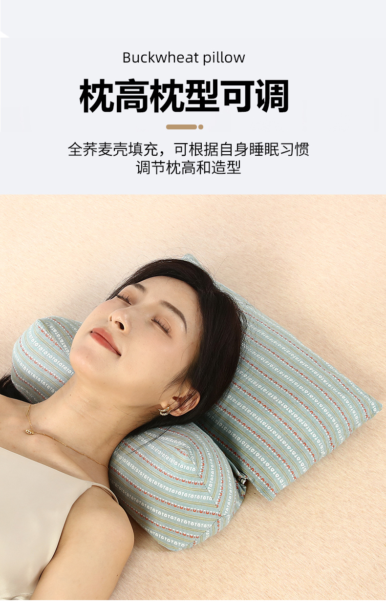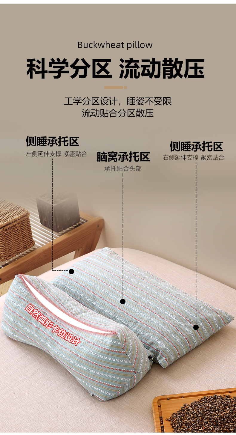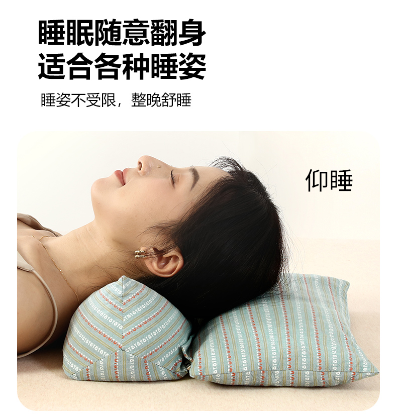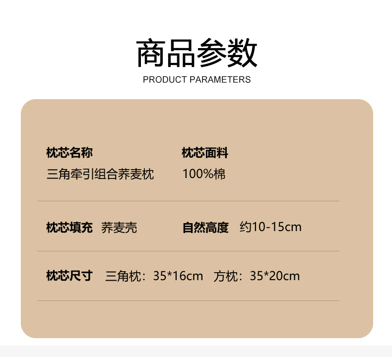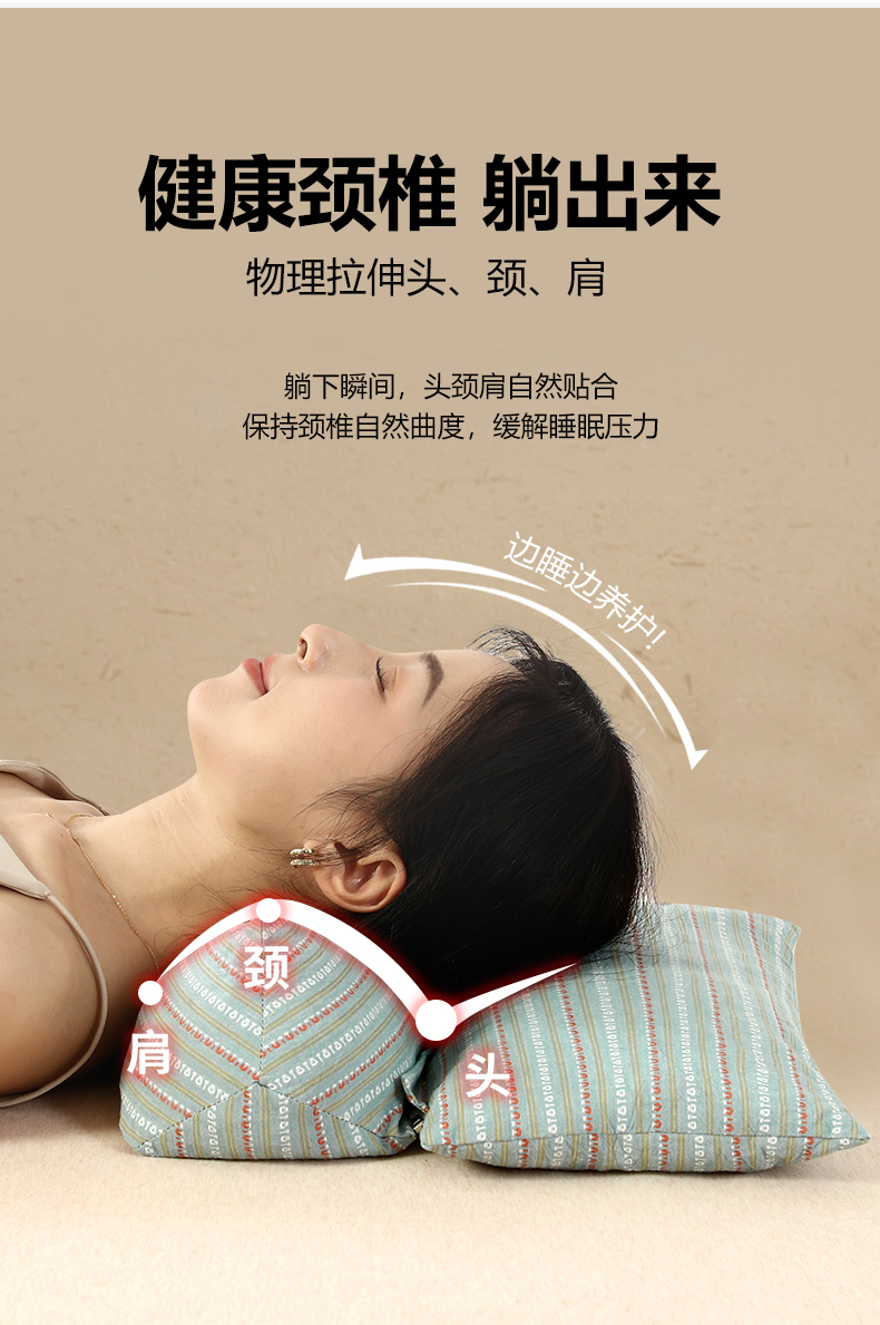 商品名称:(总)梦叶草 2025新款全棉水洗棉三角牵引组合荞麦枕 枕头护颈枕芯