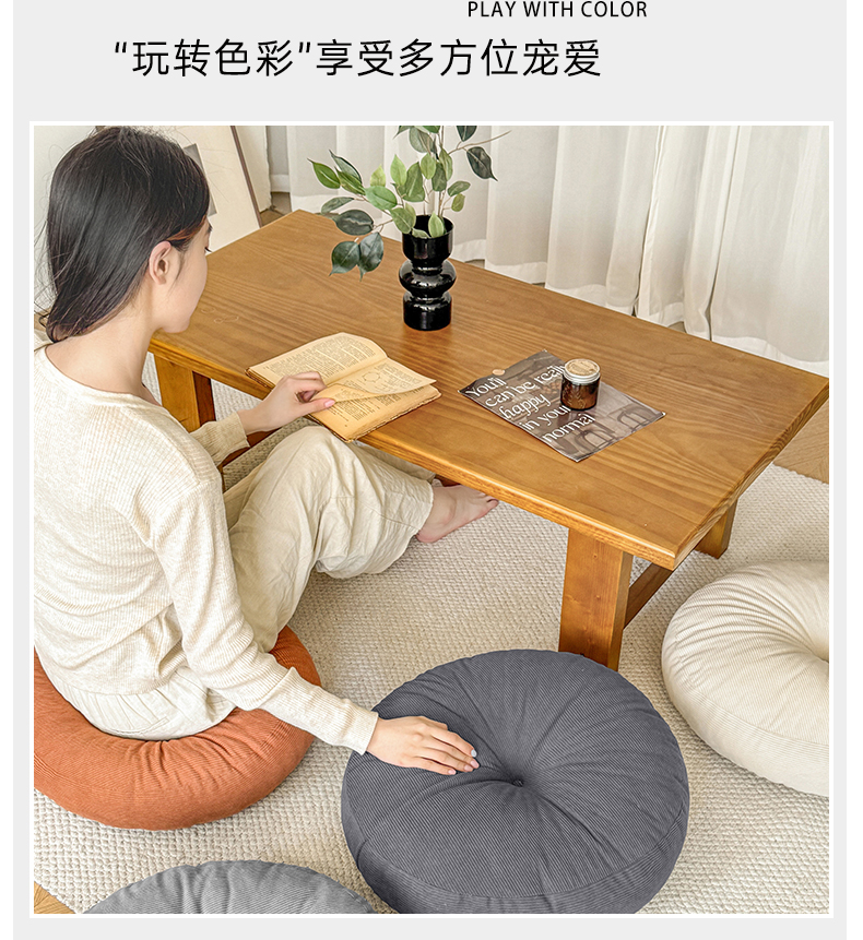 商品名称:囍莱家纺 2025新款飘窗榻榻米圆形蒲团坐垫加厚布艺圆型日式椅垫阳台窗台地板座垫子 米白色