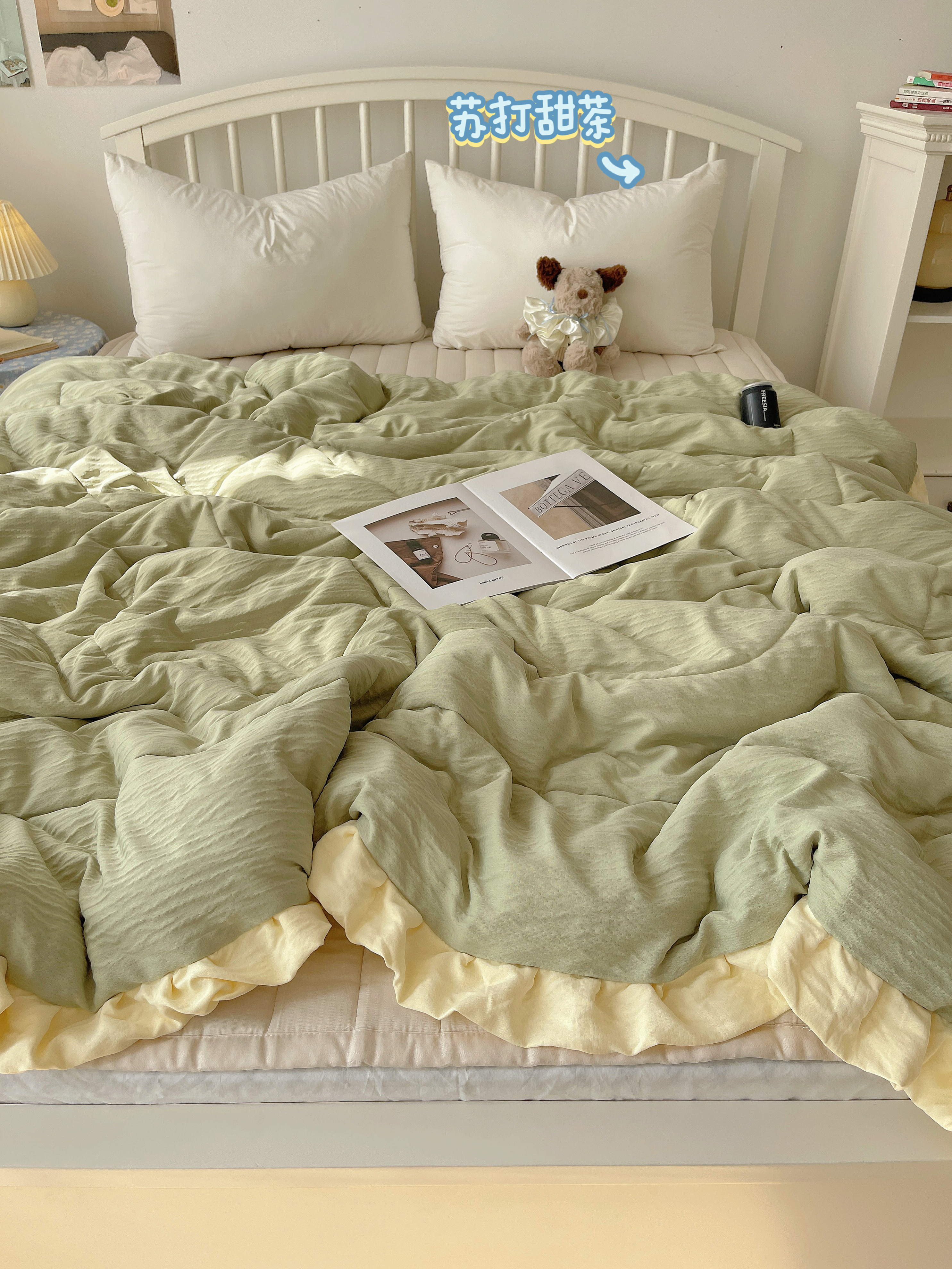 商品名称:顾里家纺 2025春夏新款韩系花边皱皱纱夏被夏凉被空调被 海盐泡泡