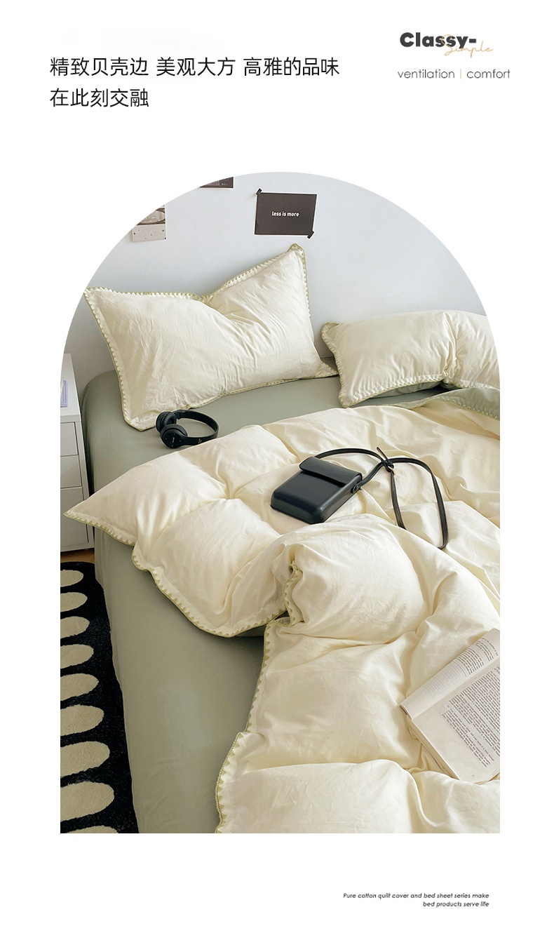 (总)思诺羽床笠 2025新款水洗棉贝壳边四件套系列,贝壳边-贝壳白+抹茶绿,贝壳边-豆沙深灰,贝壳边-海盐蓝+奶油黄,贝壳边-海盐蓝+优雅灰,贝壳边-奶油黄+浅米咖,贝壳边-浅紫深紫,贝壳边+布鲁灰,贝壳边+卡其深灰,贝壳边+流光灰,贝壳边+奶油白+暗夜灰,贝壳边+柠檬黄,贝壳边+浅粉黑,贝壳边+浅卡其+深咖,贝壳边+浅深灰,贝壳边+荧光绿+暗夜灰,贝壳边+月光白+海盐蓝