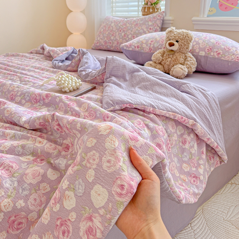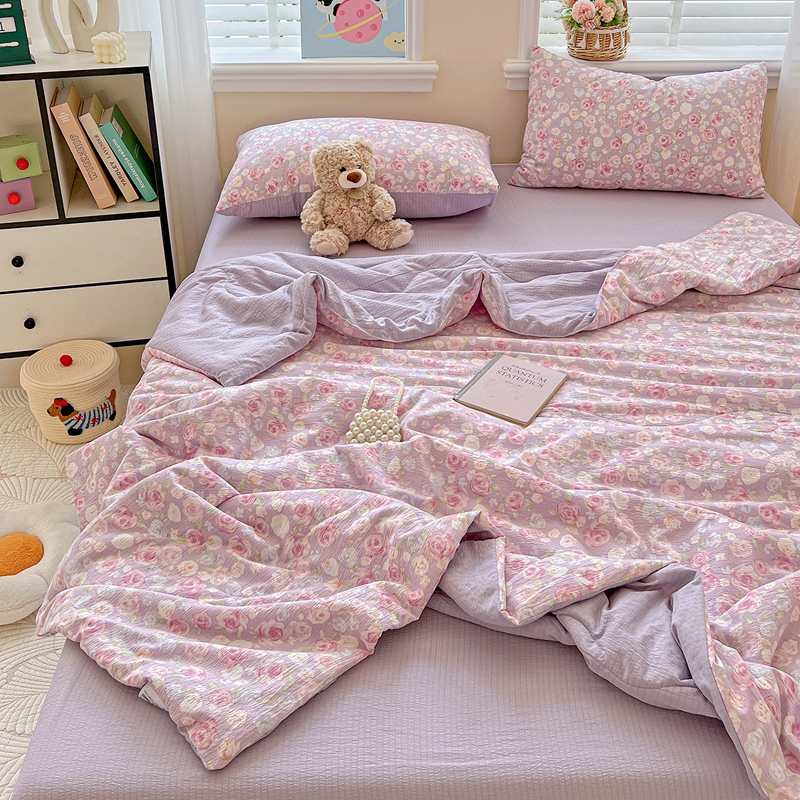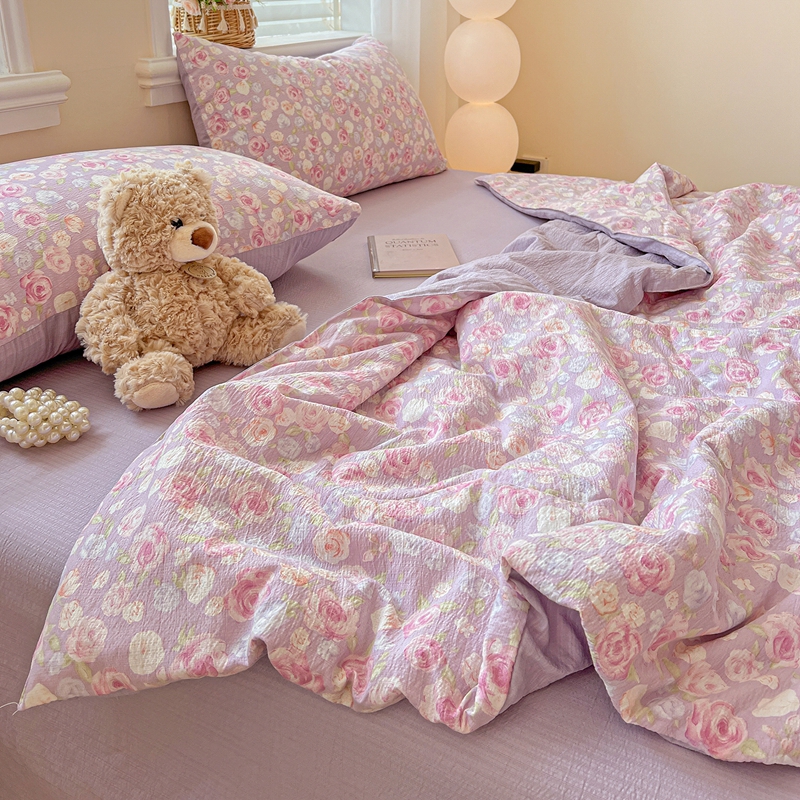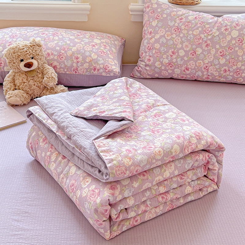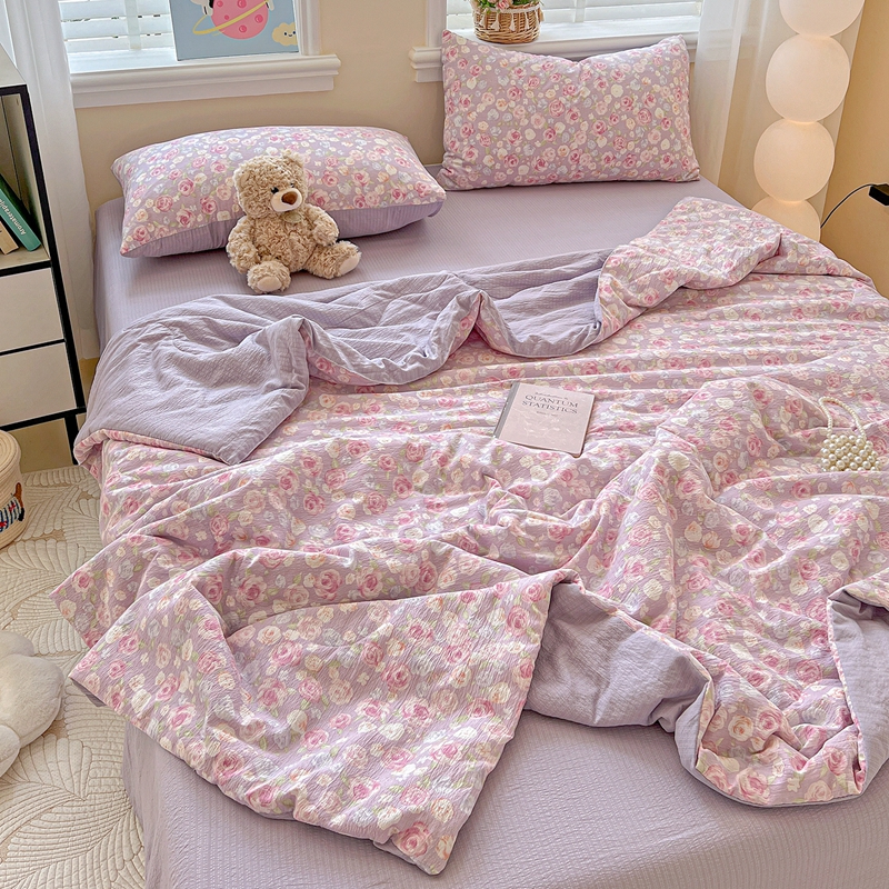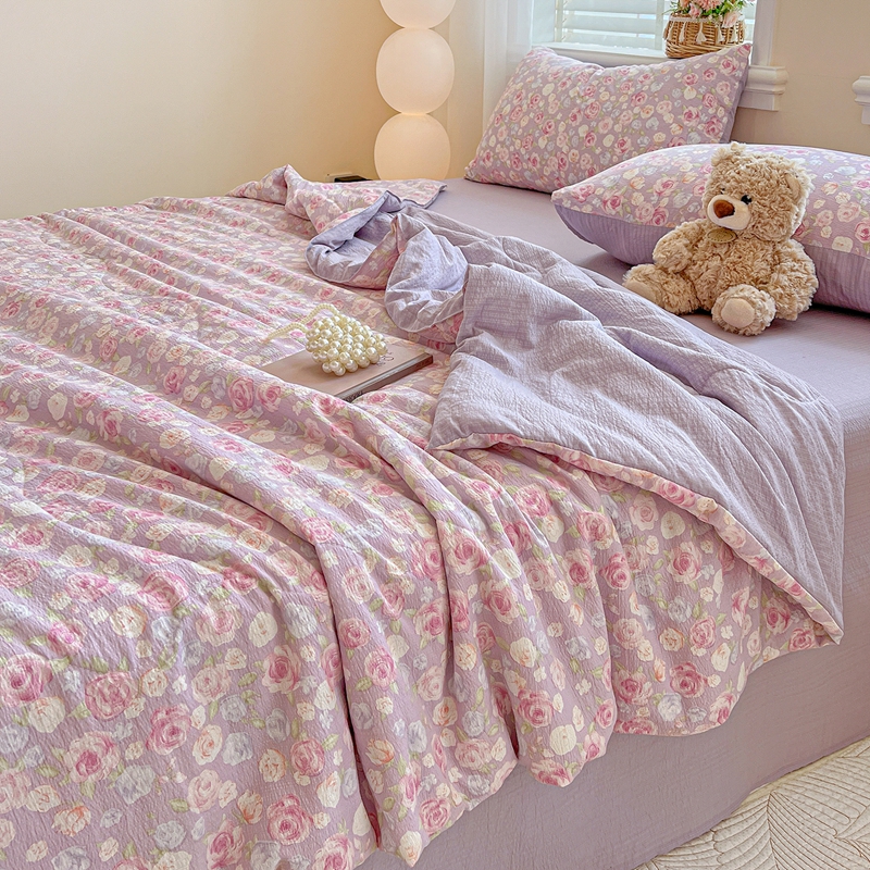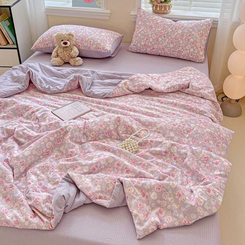 当前位置: 91家纺网 > 商品网购 > 床品套件 > 四件套 > 夏被四件套 > 一比一家纺 2025新款云感皱皱纱简单款夏被夏凉被空调被四件套 十里桃花粉