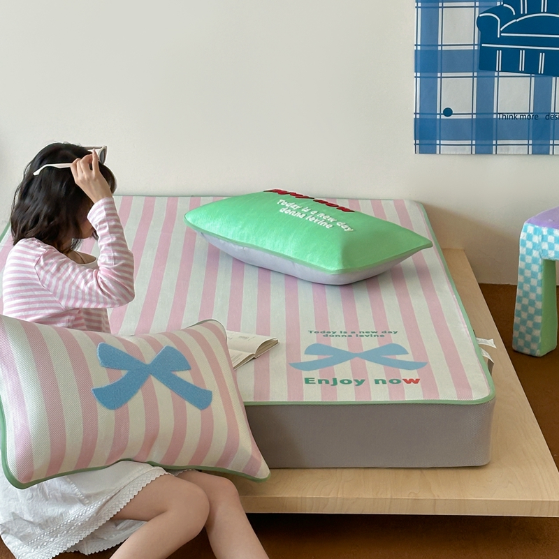 (总)觅糖2025新款ins冰藤席毛巾绣凉席